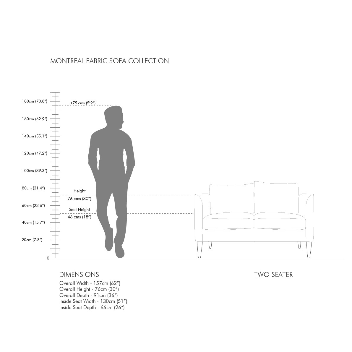 2 Seater: 157cm W x 91cm D x 76cm H (62" Width x 36" Depth x 30" Height)