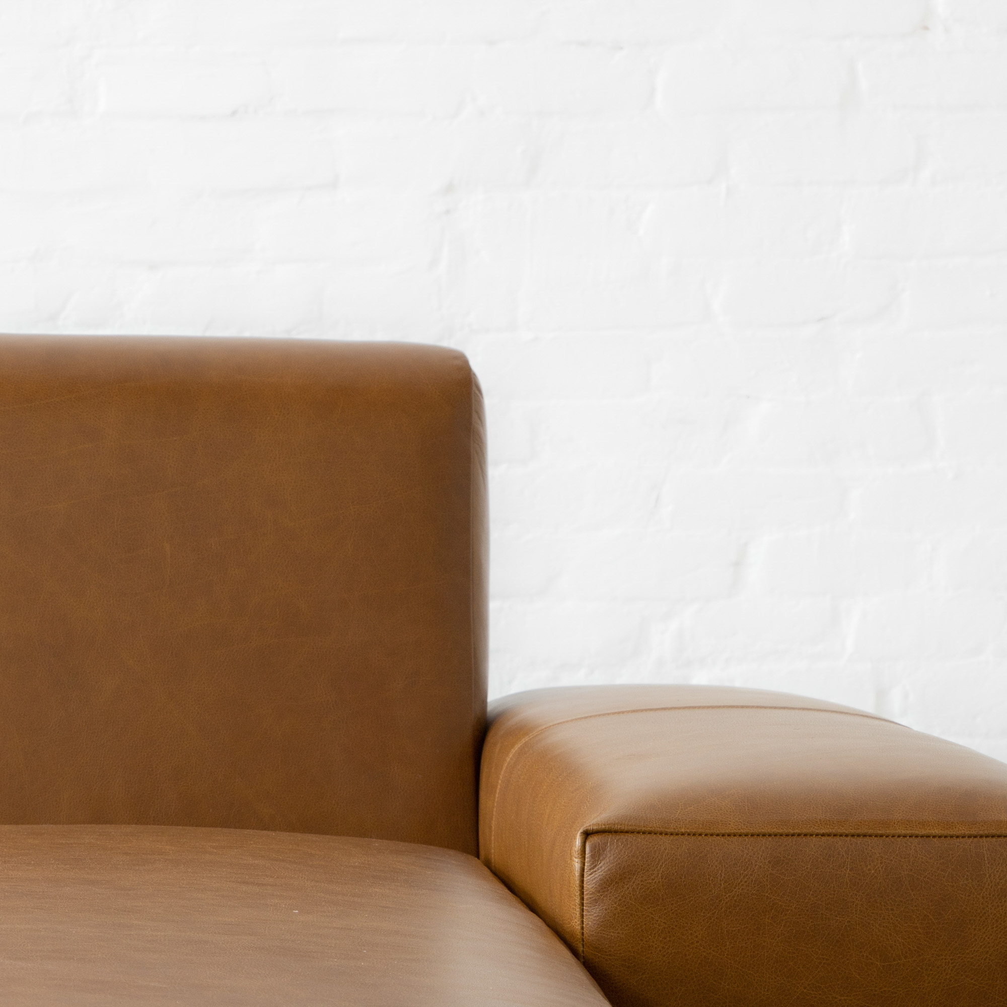 Top-grain leather is aniline dyed with an earthy Cognac hue that will lighten and soften with use and time, and will develop a rich patina. Our antiqued leather is finished in an intensive process that lends it a soft, brushed appearance with an aged, classic look. The finishing process of these selected hides brings out its natural highs and lows in color and texture. The leather becomes even softer and more supple with age and wear. There could be variations in color and texture of various parts from hide to hide, which makes each piece unique.