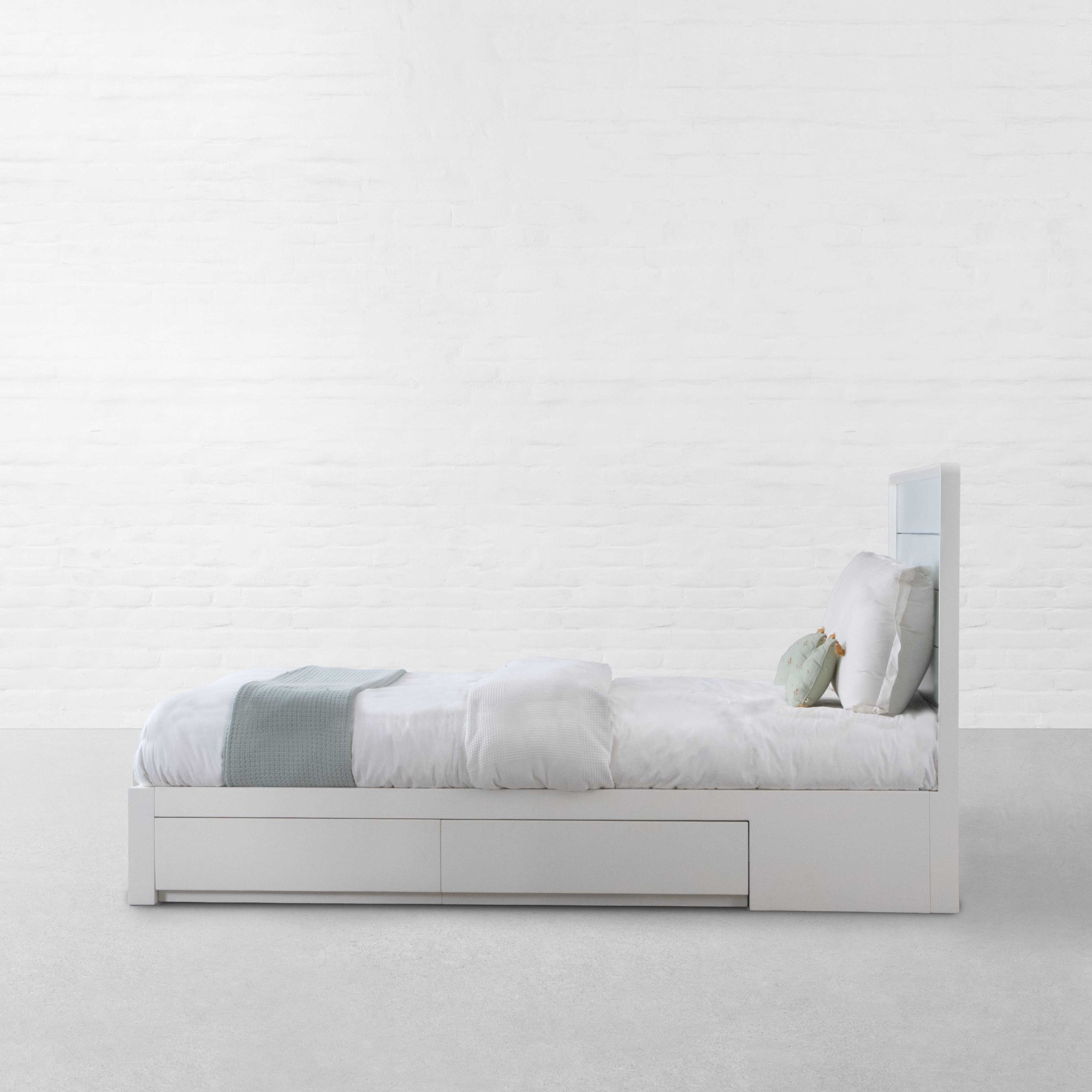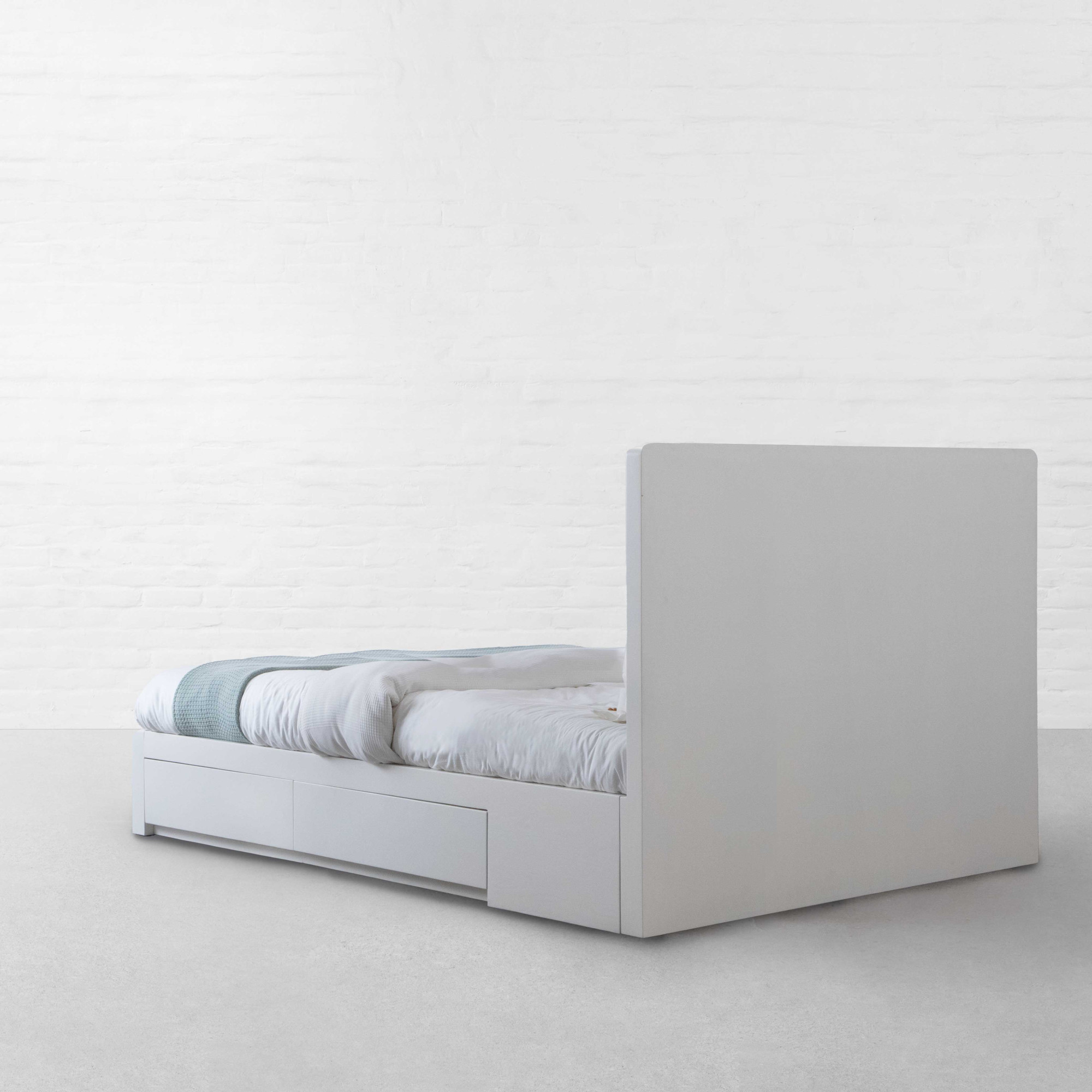 Taking inspiration from the idyllic streets of England, the Nottingham Drawer Bed combines timeless design with everyday practicality. The clean lines and soft curves of its silhouette lend elegance to your space, while the plank-style headboard adds a distinct design element that balances simplicity with charm. Featuring spacious built-in drawers that offer ample storage for linens, clothing, or seasonal items. Crafted from solid wood, the bed showcases natural grain patterns, exuding warmth and authenticity. Perfect for modern living, the Nottingham Drawer Bed seamlessly blends style and utility, making it an ideal choice for creating an organized and serene bedroom retreat.