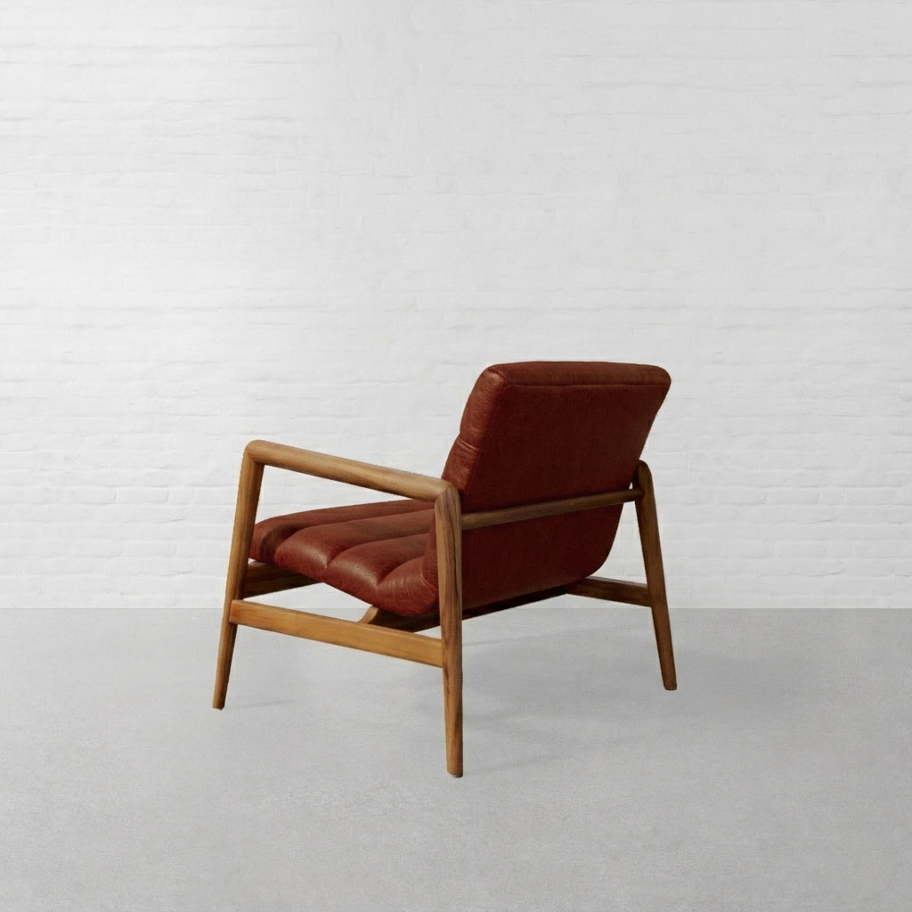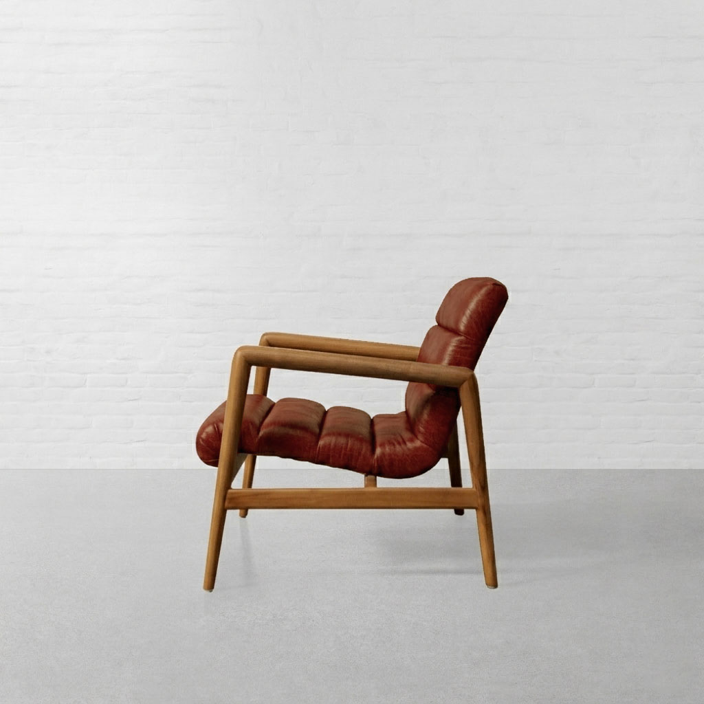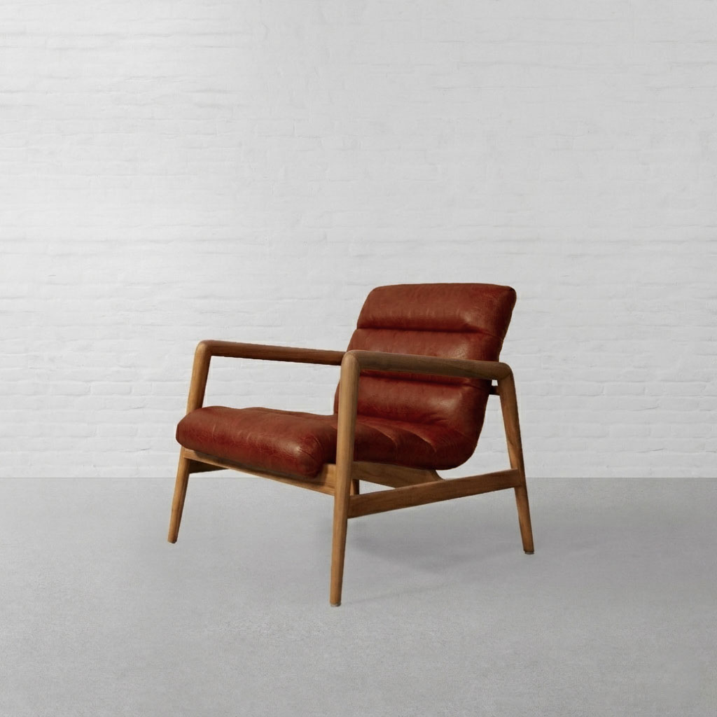 Inspired by the clean lines and functional beauty of Scandinavian design, the Odense Leather Armchair embodies simplicity with quiet refinement. Crafted from premium teak wood, its sleek frame feels both sturdy and graceful—well suited to modern, minimal interiors. The seat, upholstered in our premium leather, brings a richer, more tactile layer to the design. Subtle horizontal tufting adds comfort and visual rhythm, while the natural grain of the leather introduces depth without disrupting the chair’s restraint. Smooth, durable, and designed to age beautifully, it lends a sense of warmth to the otherwise light structure. With its balanced proportions and understated profile, the armchair retains its airy presence—offering comfort without visual weight, and elegance without excess.