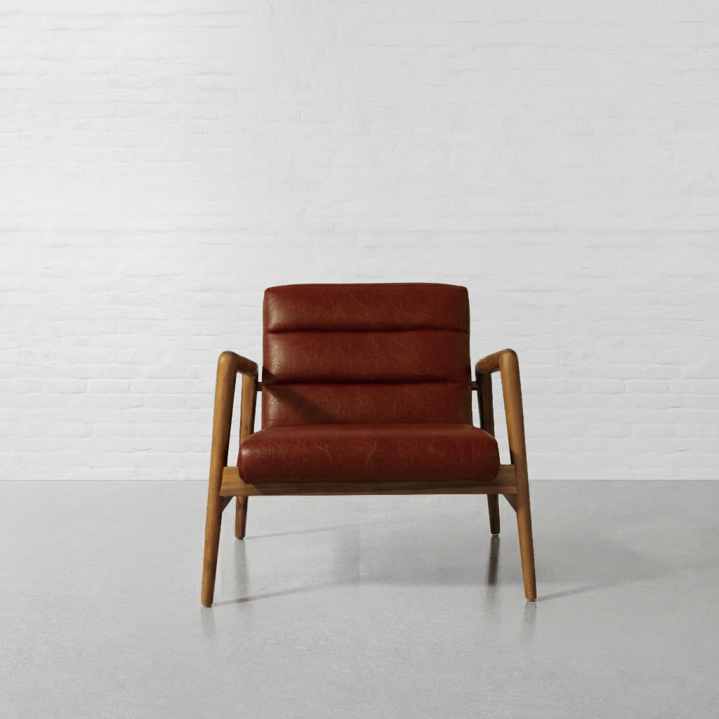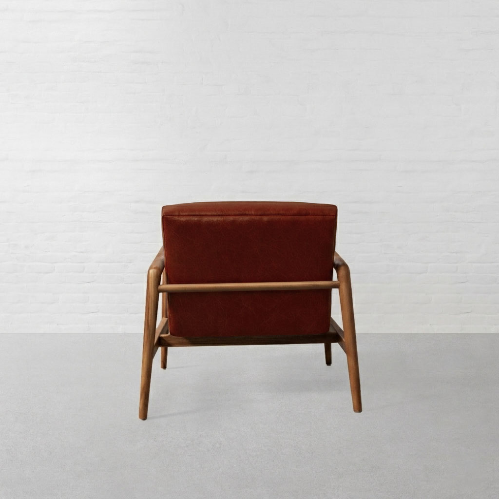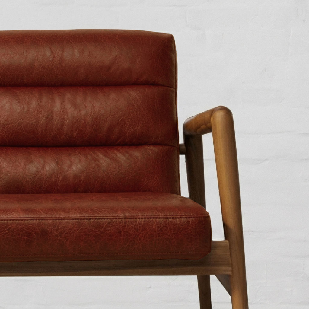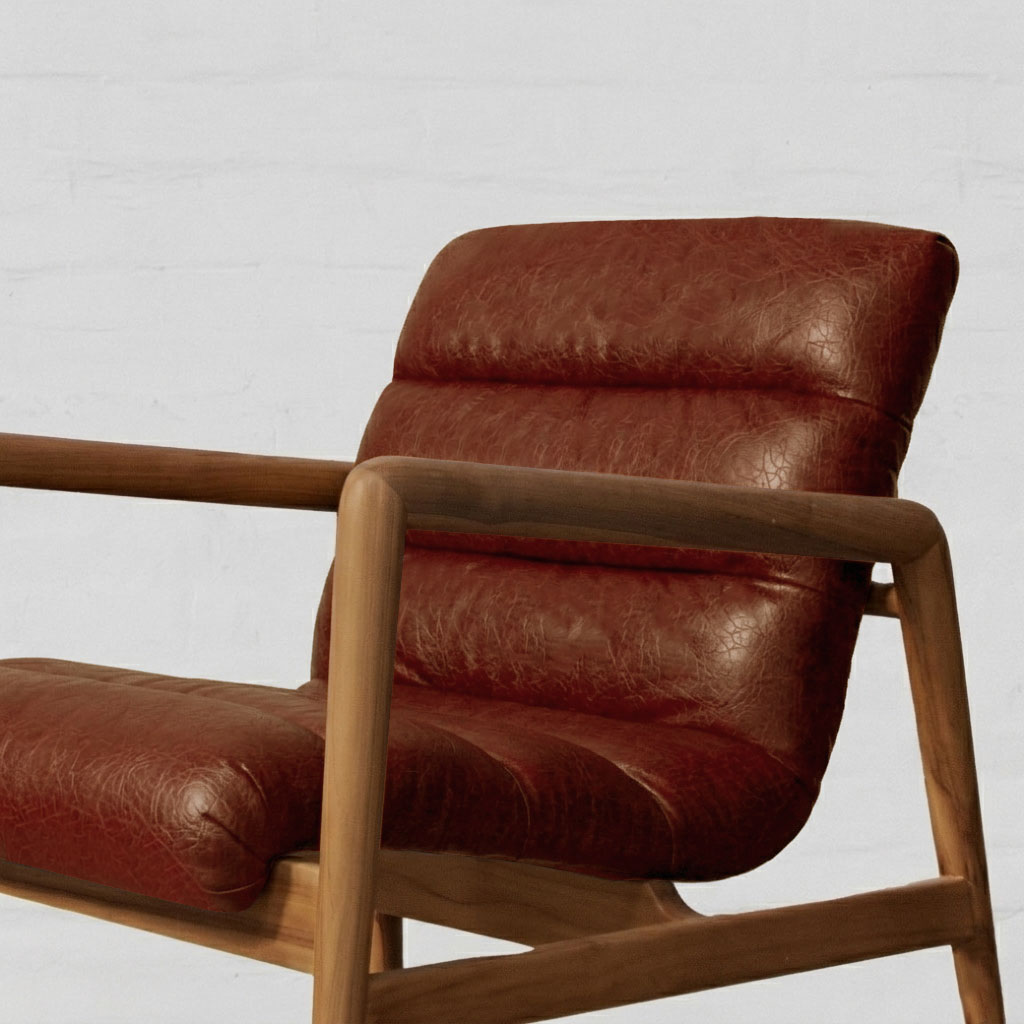 Inspired by the clean lines and functional beauty of Scandinavian design, the Odense Leather Armchair embodies simplicity with quiet refinement. Crafted from premium teak wood, its sleek frame feels both sturdy and graceful—well suited to modern, minimal interiors. The seat, upholstered in our premium leather, brings a richer, more tactile layer to the design. Subtle horizontal tufting adds comfort and visual rhythm, while the natural grain of the leather introduces depth without disrupting the chair’s restraint. Smooth, durable, and designed to age beautifully, it lends a sense of warmth to the otherwise light structure. With its balanced proportions and understated profile, the armchair retains its airy presence—offering comfort without visual weight, and elegance without excess.