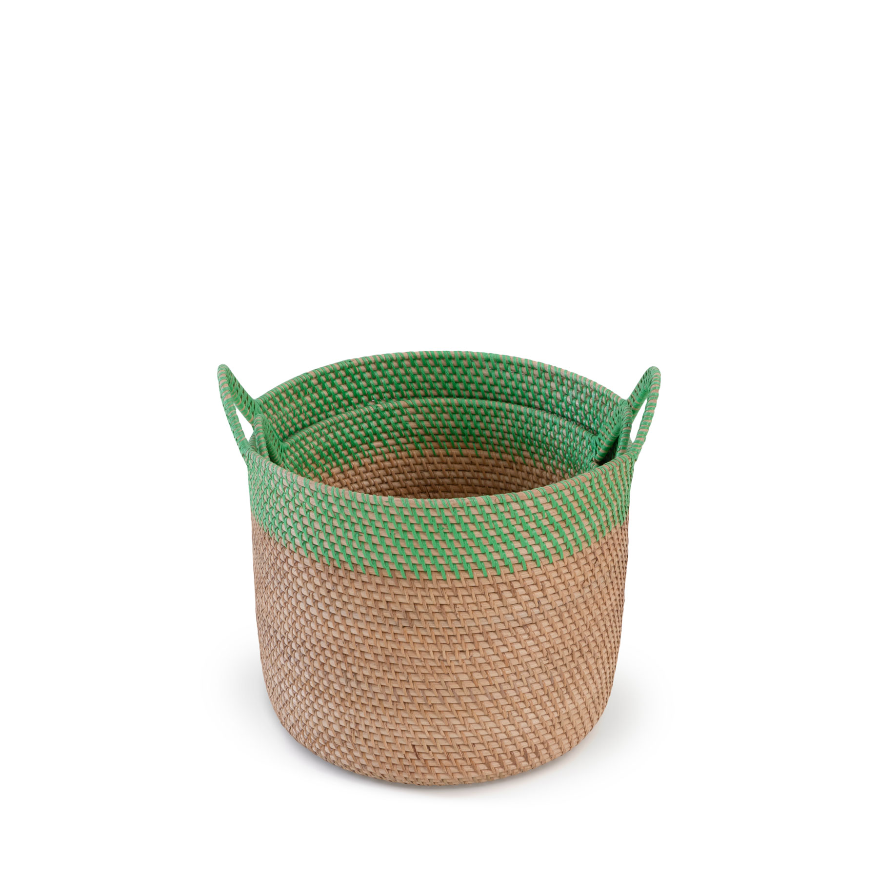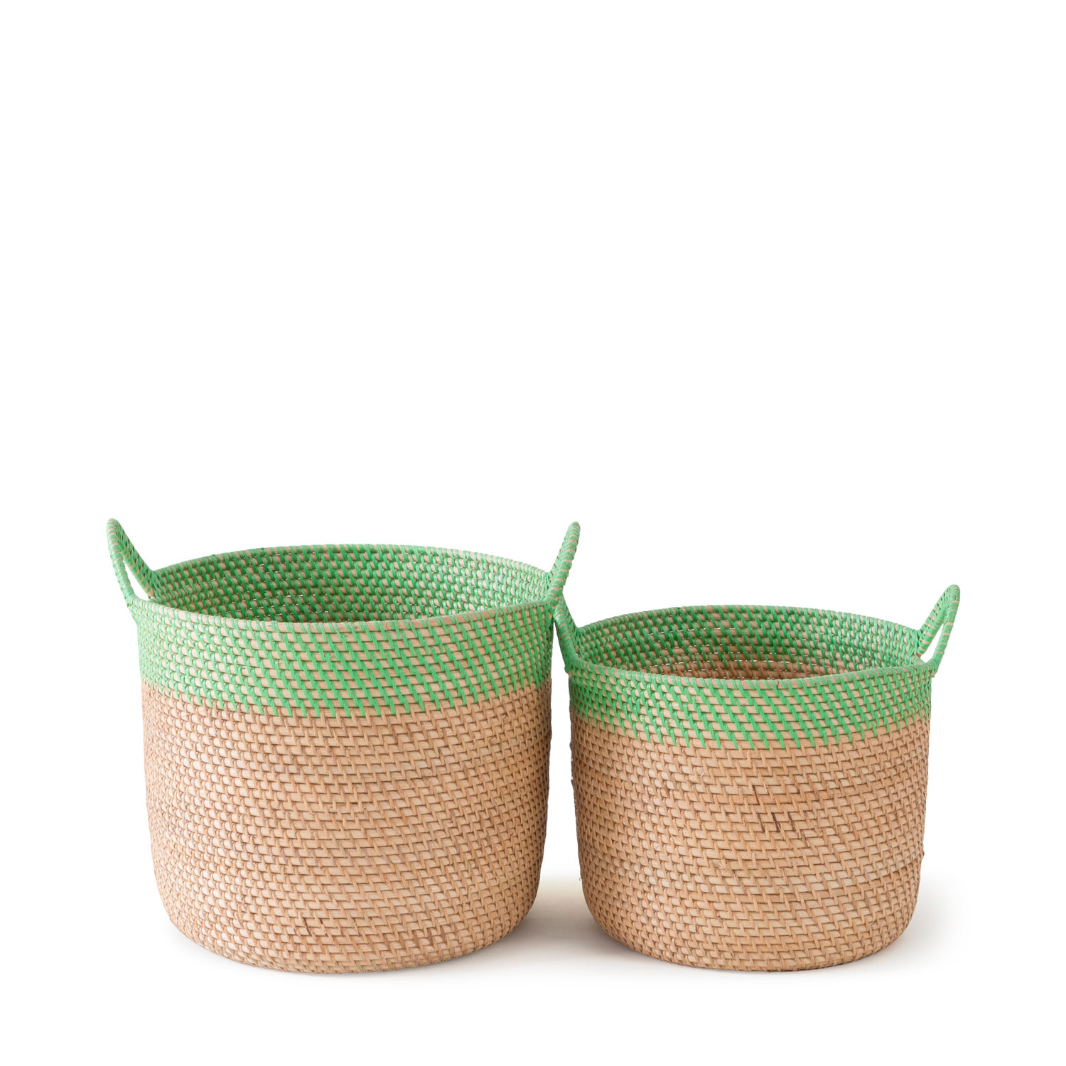 Generic Name: Peru Rattan Basket-(Natural+Leafy Green)