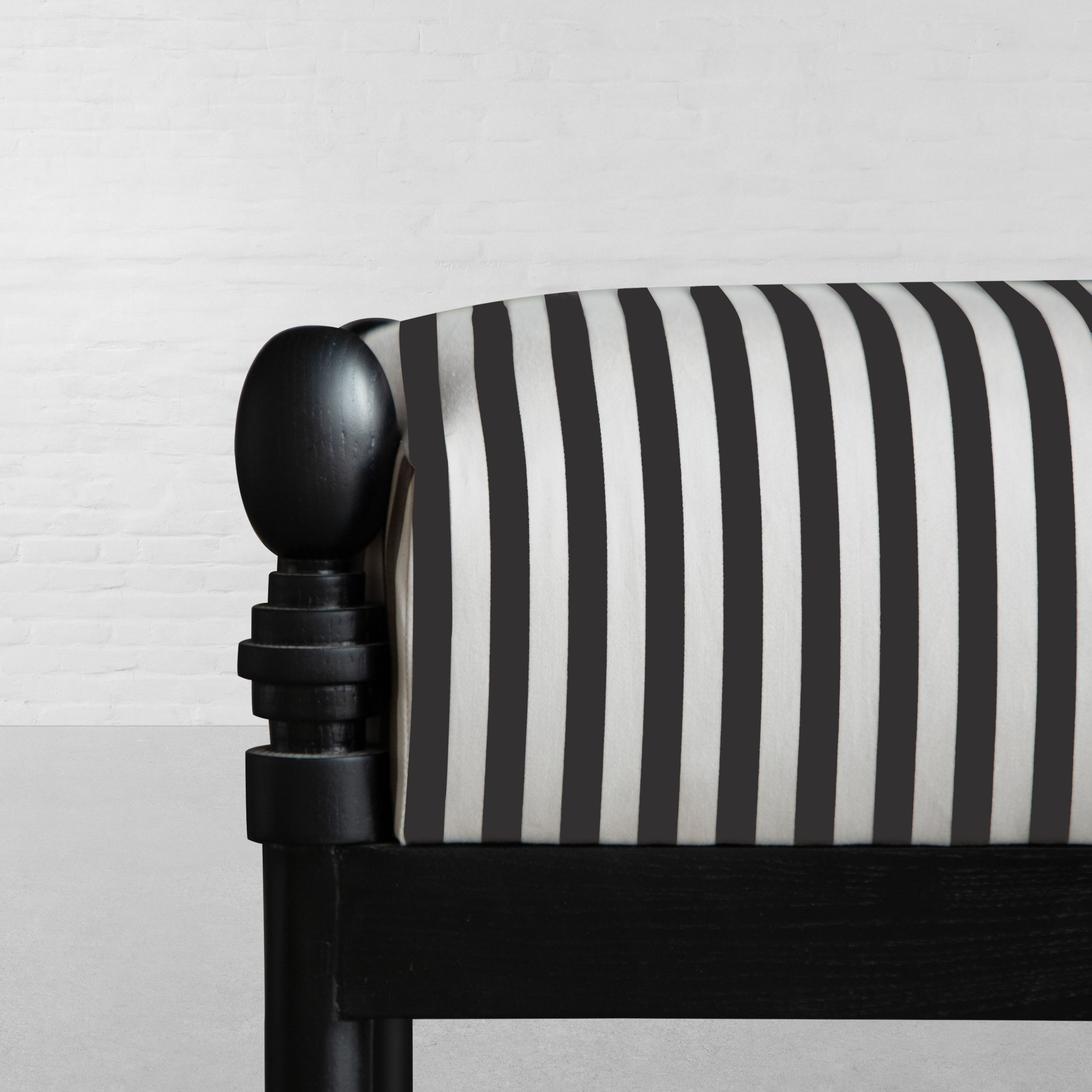 Introducing the Charcoal Stripe, a timeless fabric that adds a touch of modern sophistication to any space. This elegant design features a bold contrast of deep charcoal and crisp white, creating a classic and versatile look. The vertical stripes offer a sense of height and rhythm, making it an ideal choice for upholstered products like armchairs, ottomans, or even a statement headboard where the pattern can truly shine. Its versatile color palette allows for seamless pairing and styling with a variety of decor, complementing it with warm wood tones for a natural look, or contrasting it with sleek metals for a modern feel.