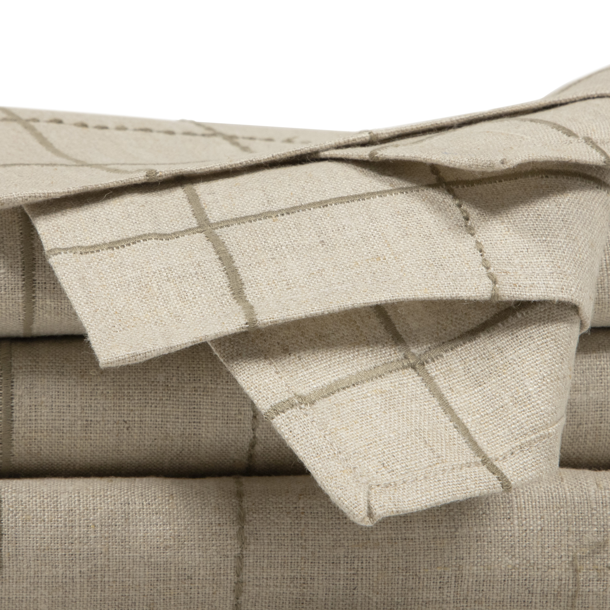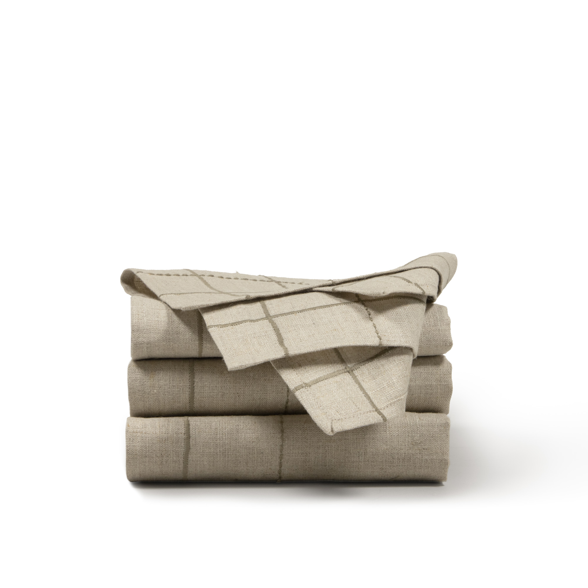 With its muted earthy tone, the Sand Checks Table Napkin finds beauty in restraint. Woven in pure linen, its supple texture is accentuated by embroidered lines that intersect in a quiet pattern. The embroidery adds a gentle tactile and definition, giving structure to the napkin’s soft drape. This design brings depth and warmth to any table, paired with crisp white plates for contrast or muted ceramics for a more tonal, organic setting. An effortless balance of rustic and refined.