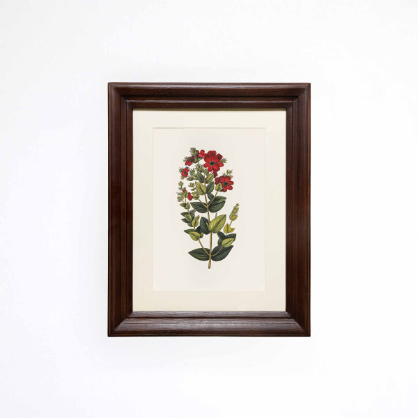 Delicate yet striking, our Scarlet flower Printed Artwork captures the quiet beauty of this charming wildflower in full bloom. Hand-painted with careful precision, the composition highlights vivid scarlet blossoms rising gracefully through layers of soft green foliage, with each petal and leaf rendered in fine detail. Printed in high quality on a thick, antique-style sheet, the artwork preserves the character and texture of the original painting. The intricate detailing and subtle tonal variations lend the piece depth, echoing the charm of classic botanical illustrations. Enclosed in a wooden frame, it carries the refined appeal of a vintage botanical plate perfect for a study corner, a nature-inspired interior, or a thoughtfully curated gallery wall.