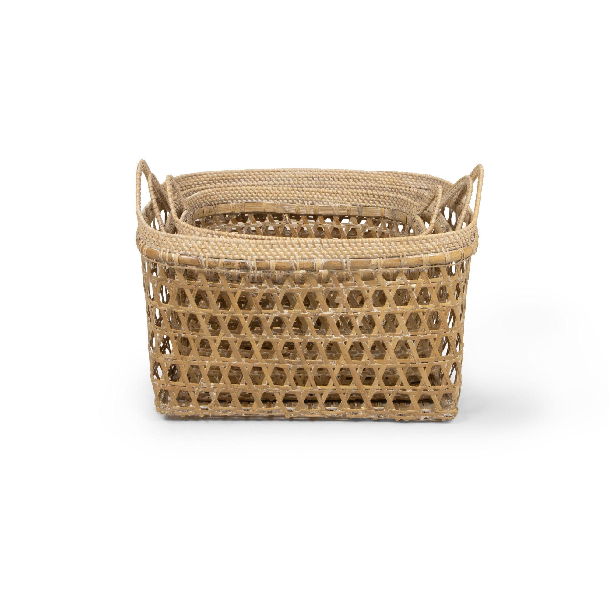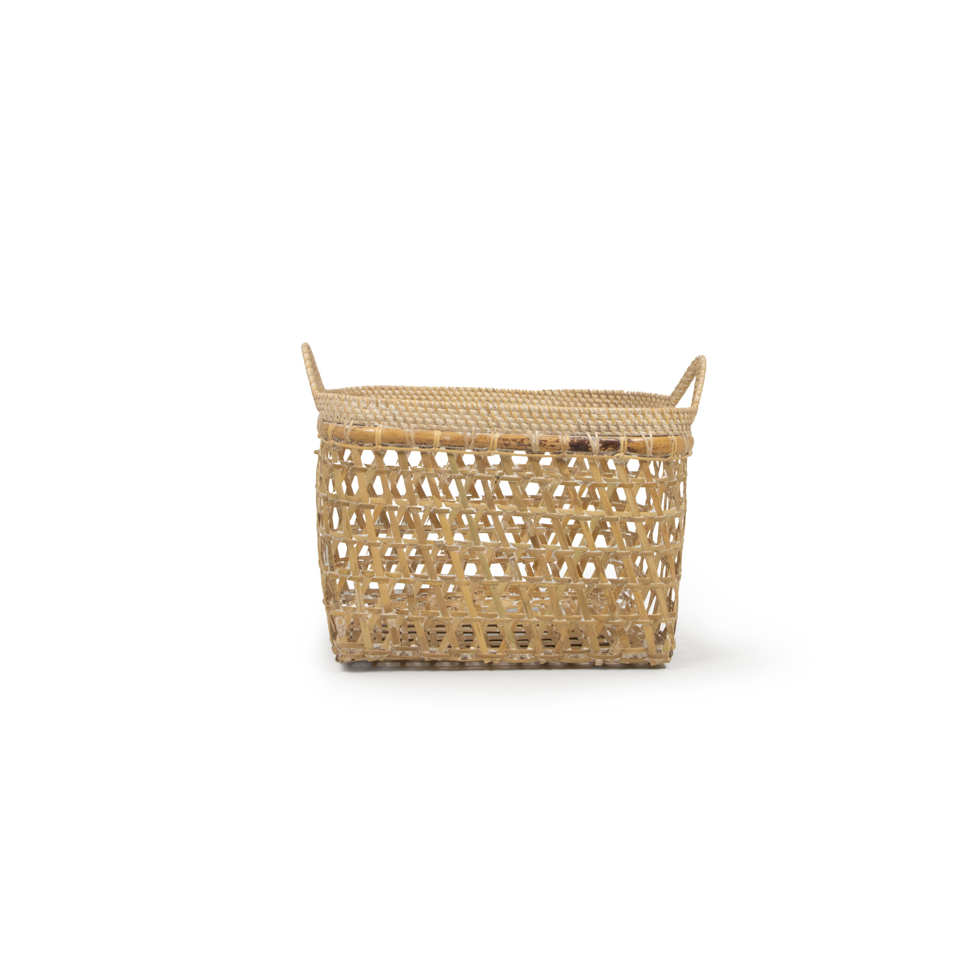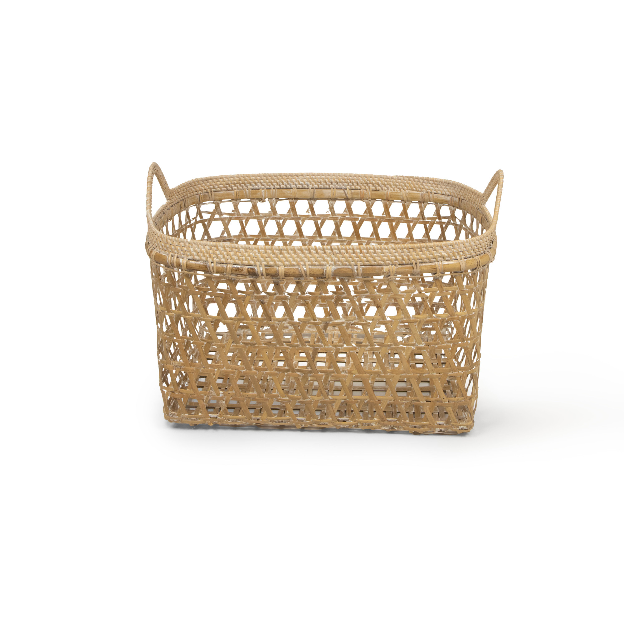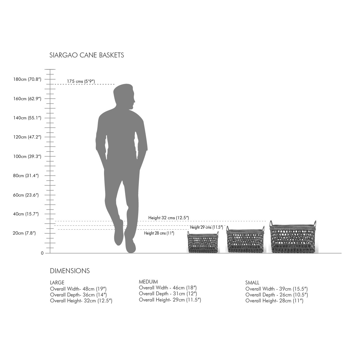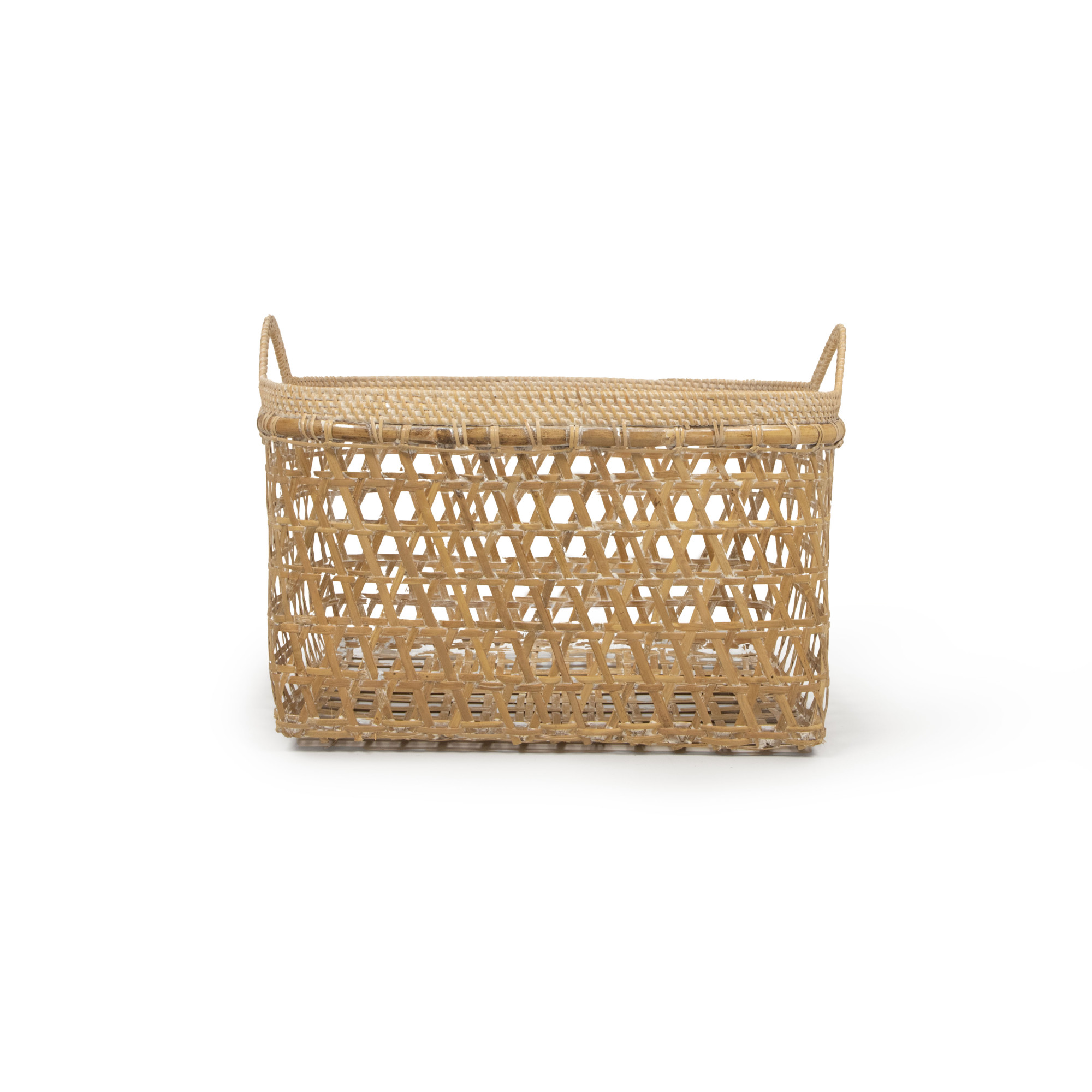 Handcrafted by skilled artisans, our Siargao Cane Basket captures the essence of island craftsmanship through its open, airy weave and natural tactile charm. The sturdy cane frame paired with open rattan weave gives it both strength and lightness, while the subtle whitewashed finish adds a breezy, coastal touch. Its airy pattern allows light to play through, bringing warmth and texture to any corner of your home.. Lightweight yet durable, it’s easy to move around and makes for a lovely addition in any room, style it by the console to hold rolled throws, in the bathroom for towels, or simply as a statement décor piece that speaks of slow, handcrafted living.