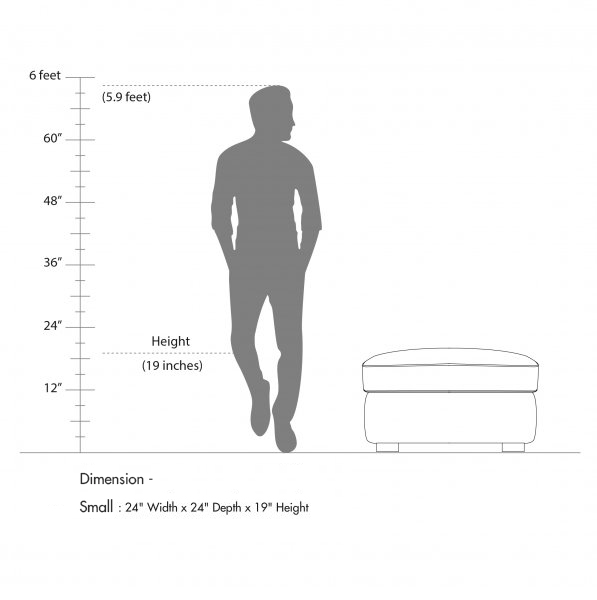 Small: 61 cm W x 61 cm D x 48 cm H (24" Width x 24" Depth x 19" Height)