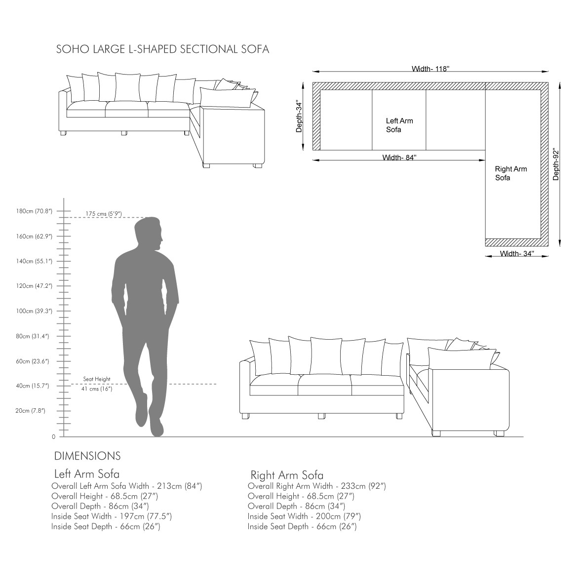 Right Arm Sofa: 233cm W x 86cm D x 68.5cm H(92" W x 34" D x 27" H)