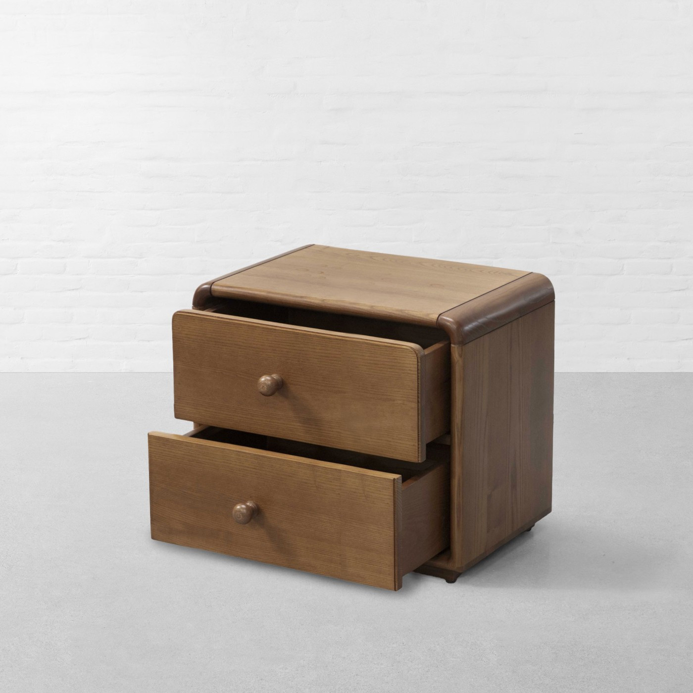 Our Sorano Side Table captures the essence of an idyllic cabin nestled in a sunlit meadow, evoking the serene beauty of the European countryside. Beautifully handcrafted with gentle rounded edges, sophisticated rounded knobs and skirting detail on the base, this compact wooden side table brings a soothing transformation to your bedside while embracing a harmonious blend of art deco and minimal aesthetics. With its two-tiered drawers, it offers ample out-of-sight storage for you to tuck away your cherished trinkets, effortlessly combining functionality with a relaxed and refined touch to elevate your room's ambiance.