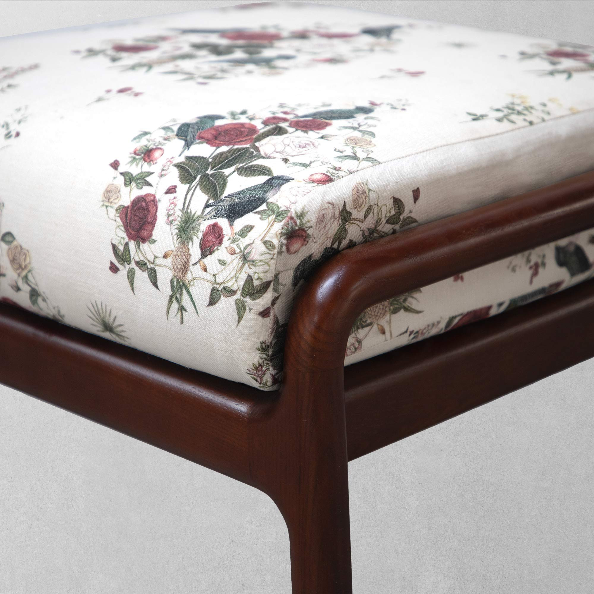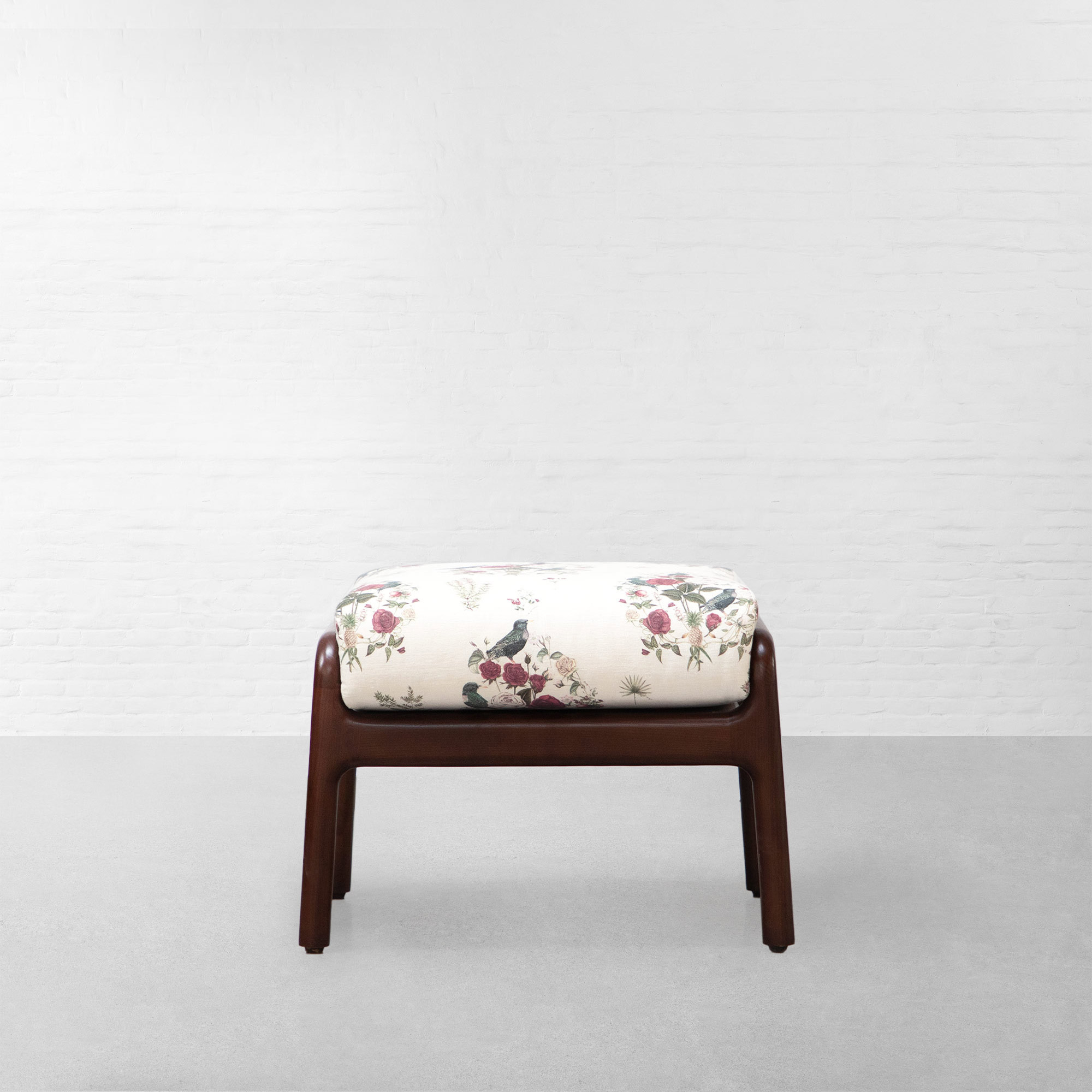 Our Sorano Ottoman captures the essence of an idyllic cabin nestled in a sunlit meadow, evoking the serene beauty of the countryside. Beautifully handcrafted with gentle linear lines, smooth turned arms in a handle shape, this understated yet lively wooden ensemble brings a soothing transformation to your master suite or family room while embracing a harmonious blend of art deco and minimal aesthetics. The ottoman features a removable cushion available in a range of our signature prints and fabrics, allowing you to customize its appearance to suit your personal style. Effortlessly combining functionality with a relaxed and refined touch, this ottoman can elevate any room's ambiance.