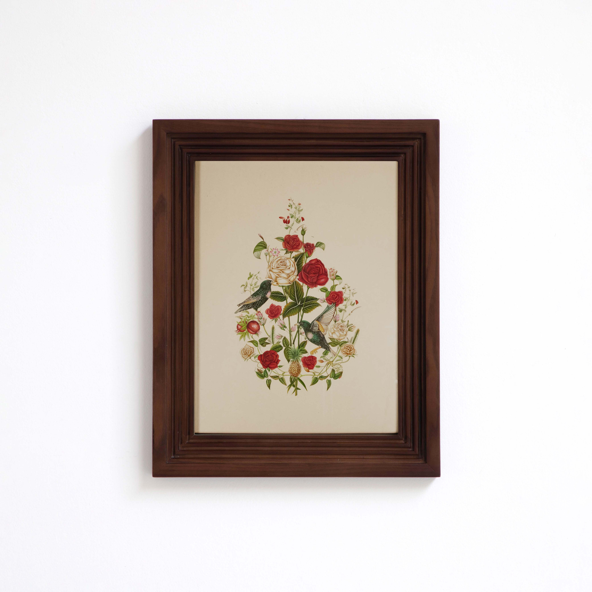 A celebration of nature’s intricate poetry, the Starling Buta Artwork brings together a vivid medley of hand-painted motifs,from graceful starlings and blooming roses to pomegranates and pineapples, each element adding depth and vibrance to the composition. The composition draws from traditional Indian buta art, where flora and fauna entwine in perfect harmony. Rendered in delicate strokes and vibrant hues, this artwork captures the essence of timeless craftsmanship while fitting beautifully into modern spaces. Set in a solid wooden frame, it brings warmth and sophistication to living rooms, hallways, or intimate corners. Thoughtfully detailed and elegantly framed, the Starling Buta Artwork also makes a wonderful gifting option, perfect for those who appreciate hand-painted artistry and refined décor.
