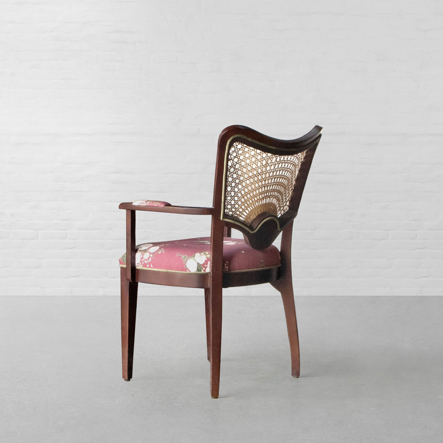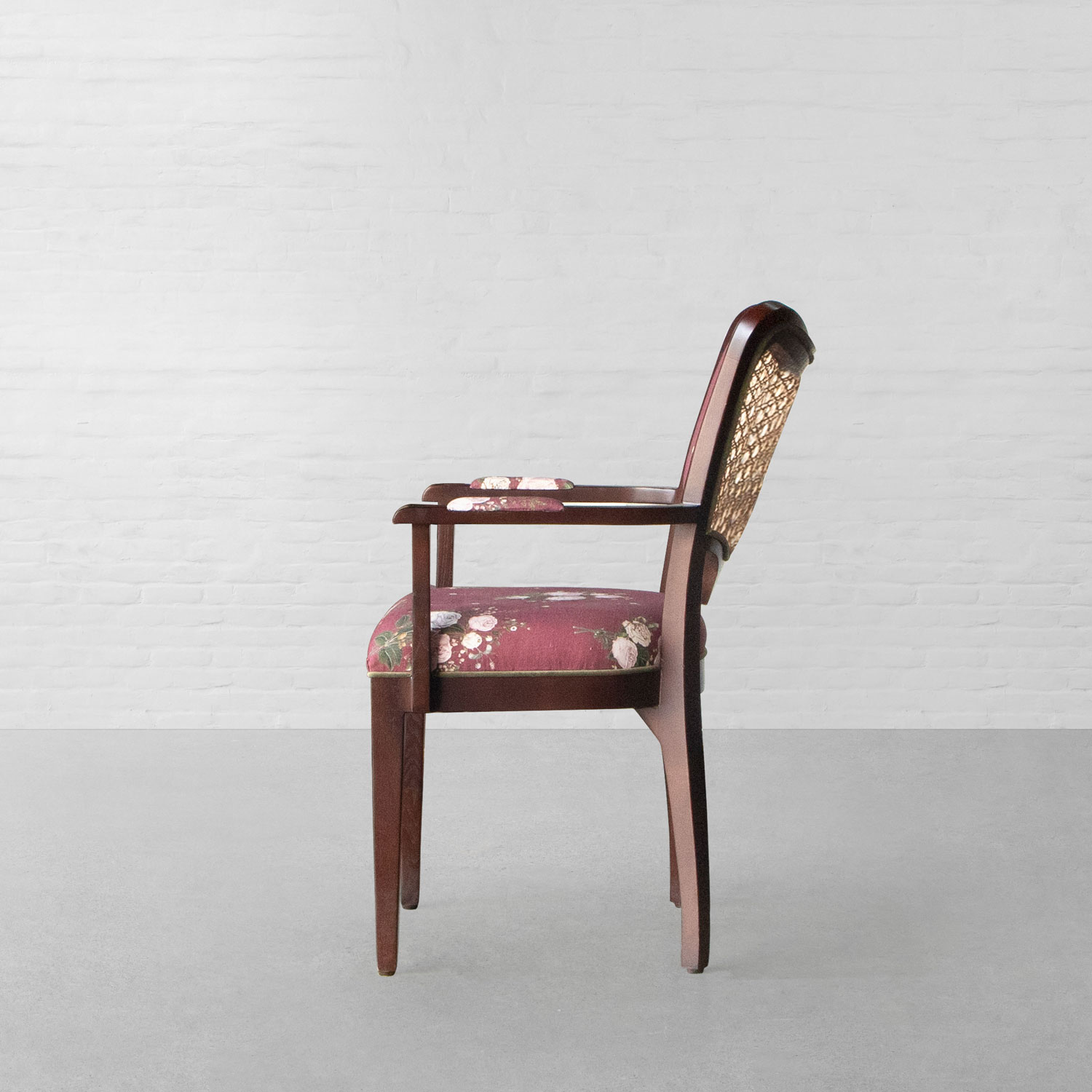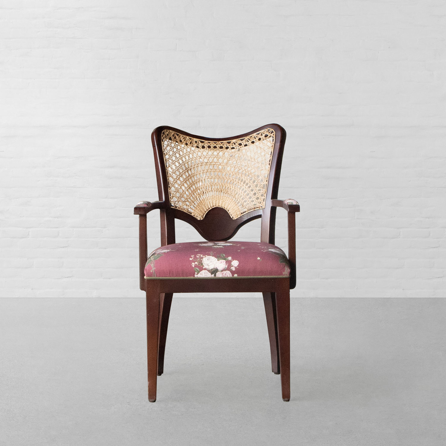 Our Starling Rattan Dining Chair-With Arm is shaped by soft curves and careful craftsmanship, designed to sit lightly within a dining space while still holding its presence. Its solid wood frame follows a gently contoured silhouette, with a curved backrest that offers visual softness and ergonomic comfort. The highlight of the design is the hand-woven rattan back, fanned outward in a radiating pattern that brings texture, breathability, and a sense of openness to the chair. The weave allows light to pass through, giving the piece an airy quality while showcasing the skill behind the making. The seat is padded and upholstered, offering comfort. Upholstery adds warmth and contrast to the wood and rattan, making the chair suitable for long, unhurried meals. Natural wood grain remains visible across the frame, grounding the design and lending it a relaxed, lived-in character. The Dining Chair works especially well around solid wood dining tables, paired with linen tableware, muted walls, and warm ambient lighting. It fits easily into dining rooms that lean toward contemporary interiors with classic undertones.