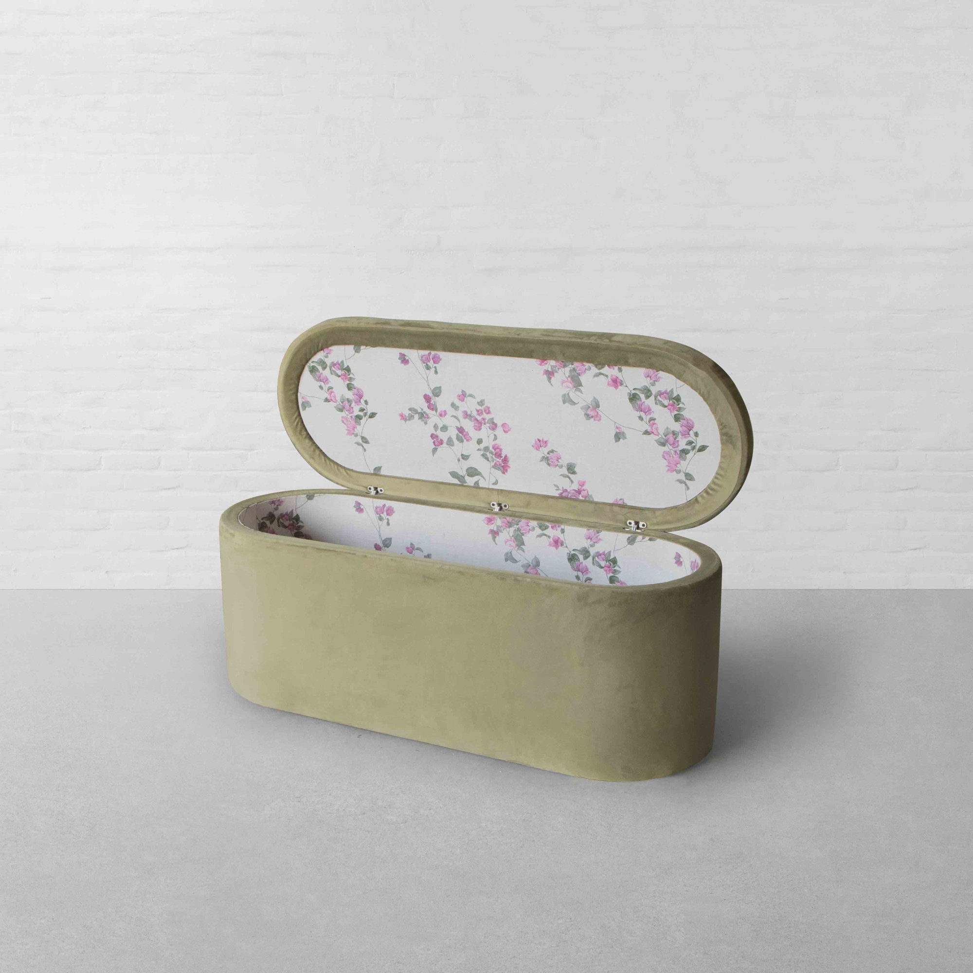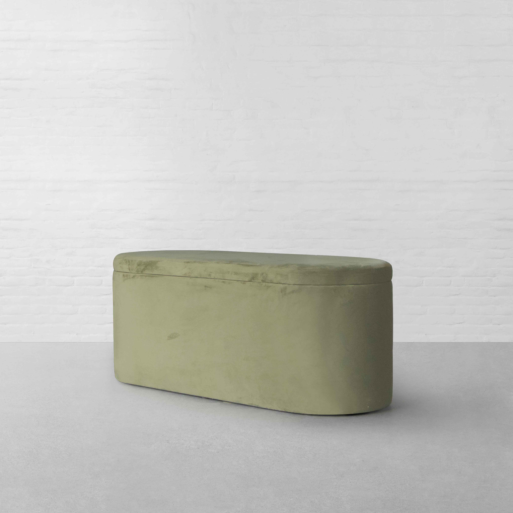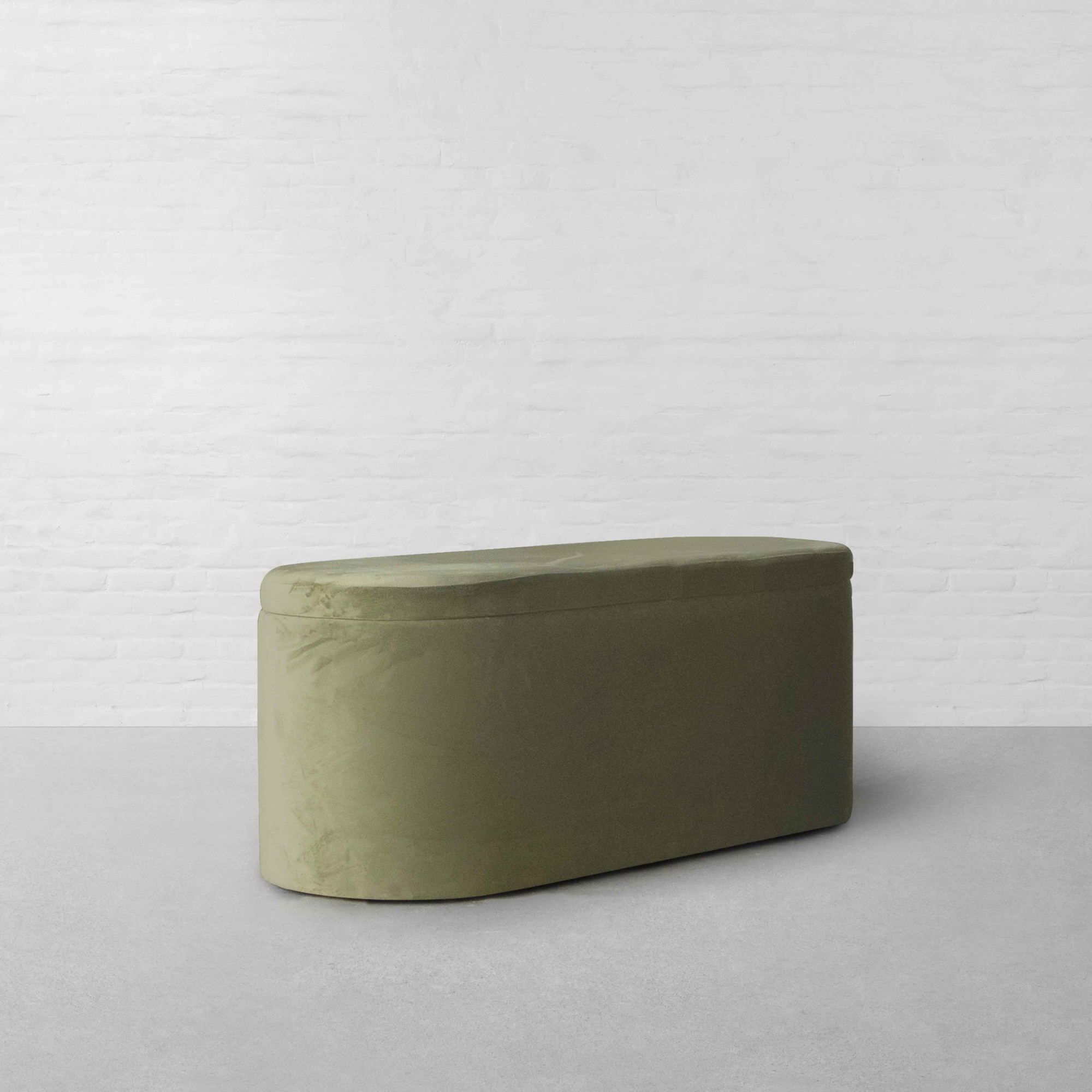 Our Starling Storage Bench is defined by its low, gently curved silhouette, designed to sit naturally at the foot of the bed or along a wall. Its form echoes the curves seen across the collection, ensuring visual continuity. Upholstered for comfort, the bench offers a welcoming surface for seating while concealing practical storage within. The bench works well as a functional accent ideal for laying out throws, storing extra cushions, or simply adding a layered look to the bedroom. Styled with textured upholstery and neutral tones, it completes the room while reinforcing the cozy, lived-in mood of the collection.