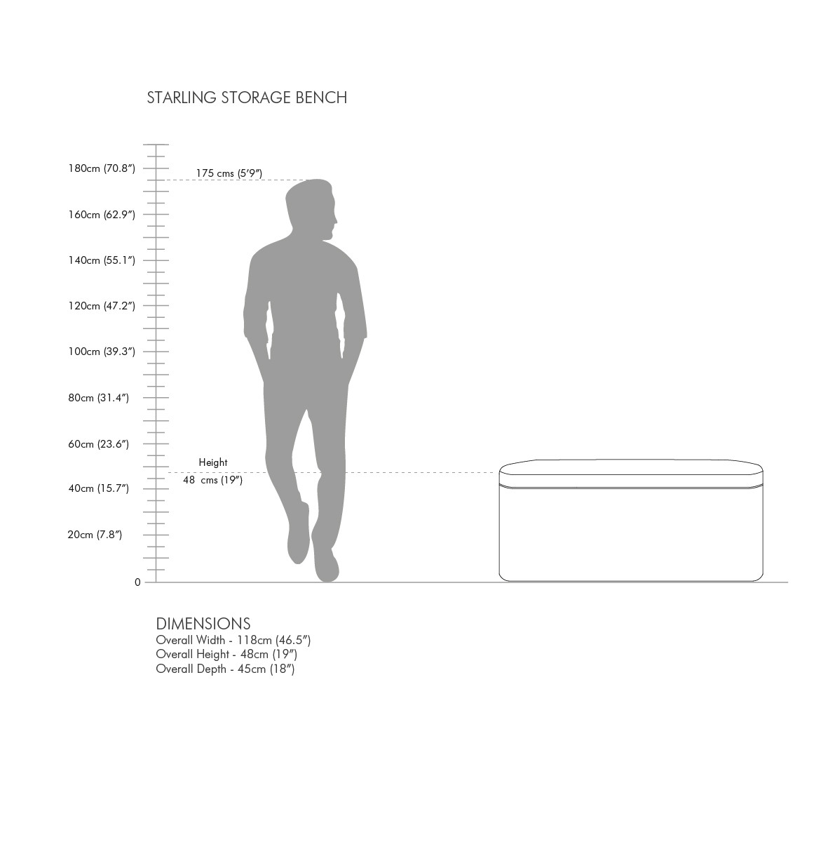 Dimension: 118cm W x 45cm D x 48cm H(46.5" W x 18" D x 19" H)
