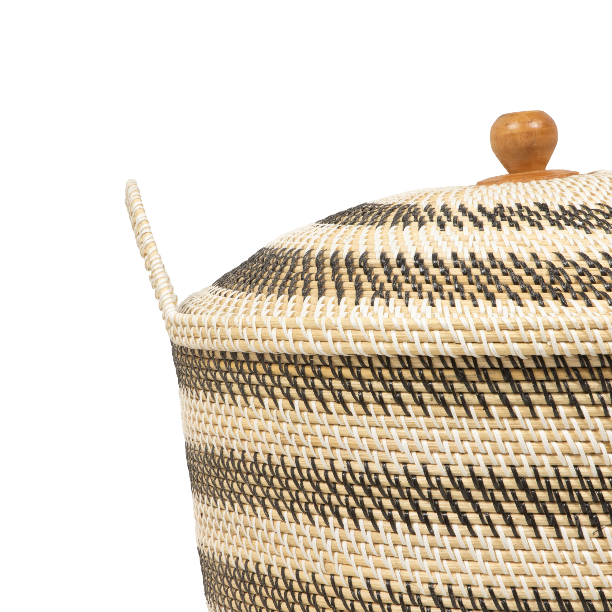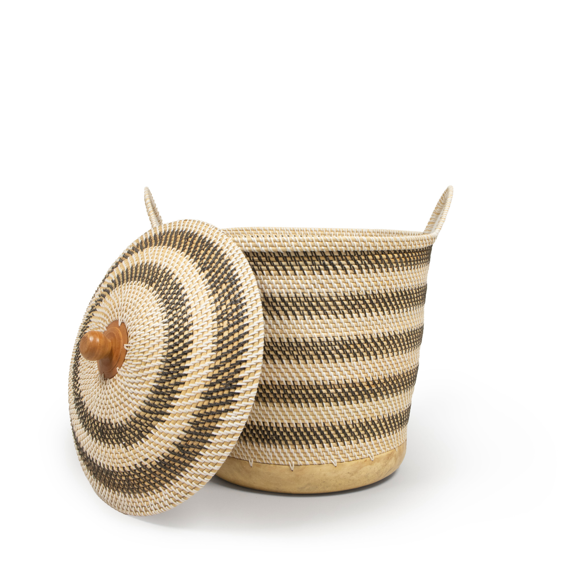 Grounded in natural beauty, our Tegal Handwoven Basket with Lid brings together traditional weaving techniques and a modern sensibility. Crafted meticulously from cane and rattan, the basket features striking dual-tone stripes that create a rhythmic play of light and shadow. A smooth wooden base anchors the piece, adding warmth and structure while enhancing its timeless aesthetic. The handwoven lid and sturdy handles lend both charm and utility, making this basket ideal for tucking away household essentials, from blankets and magazines to toys or laundry. Whether styled in a cozy corner, under a console, or beside a reading chair, its organic tones and textures seamlessly complement any interior palette.
