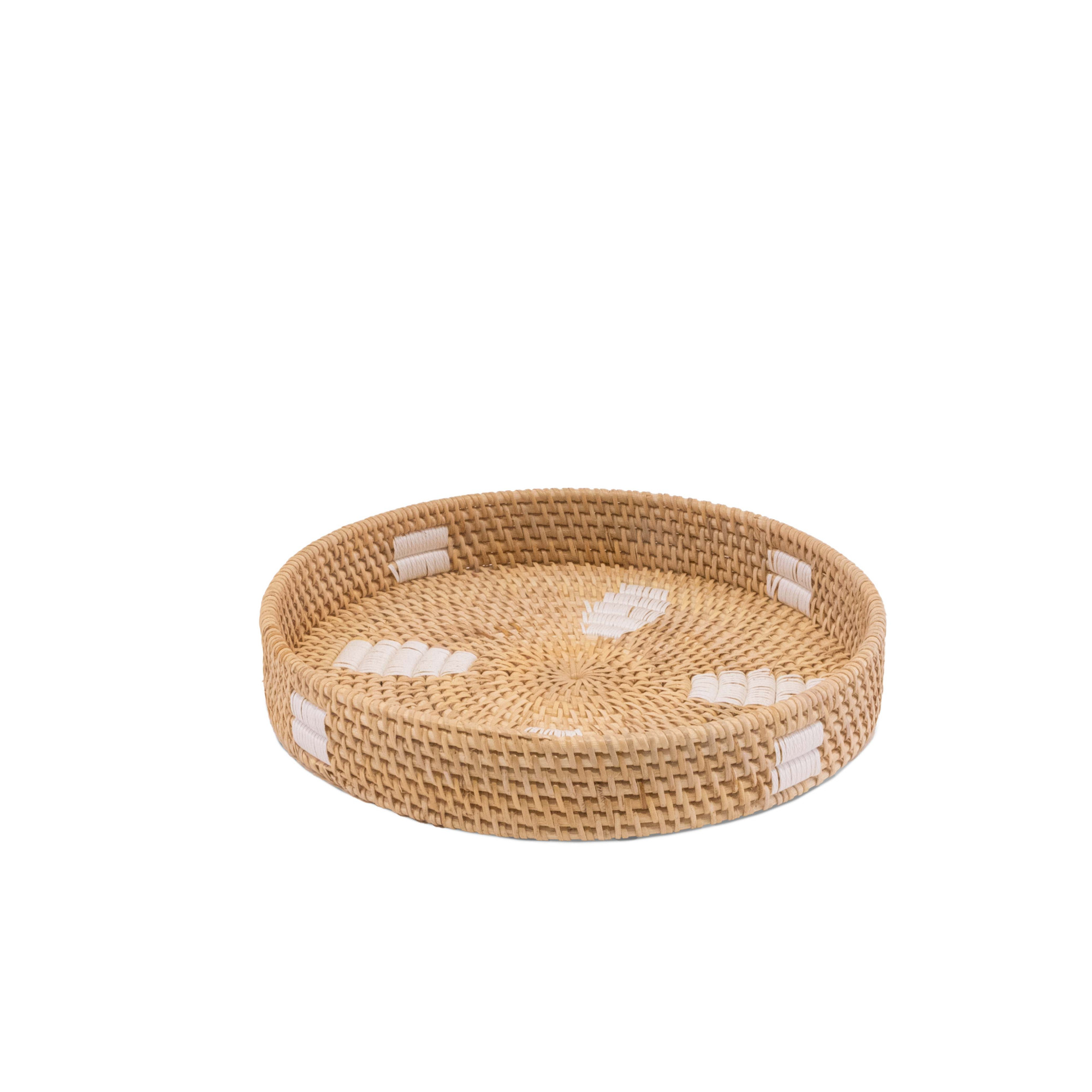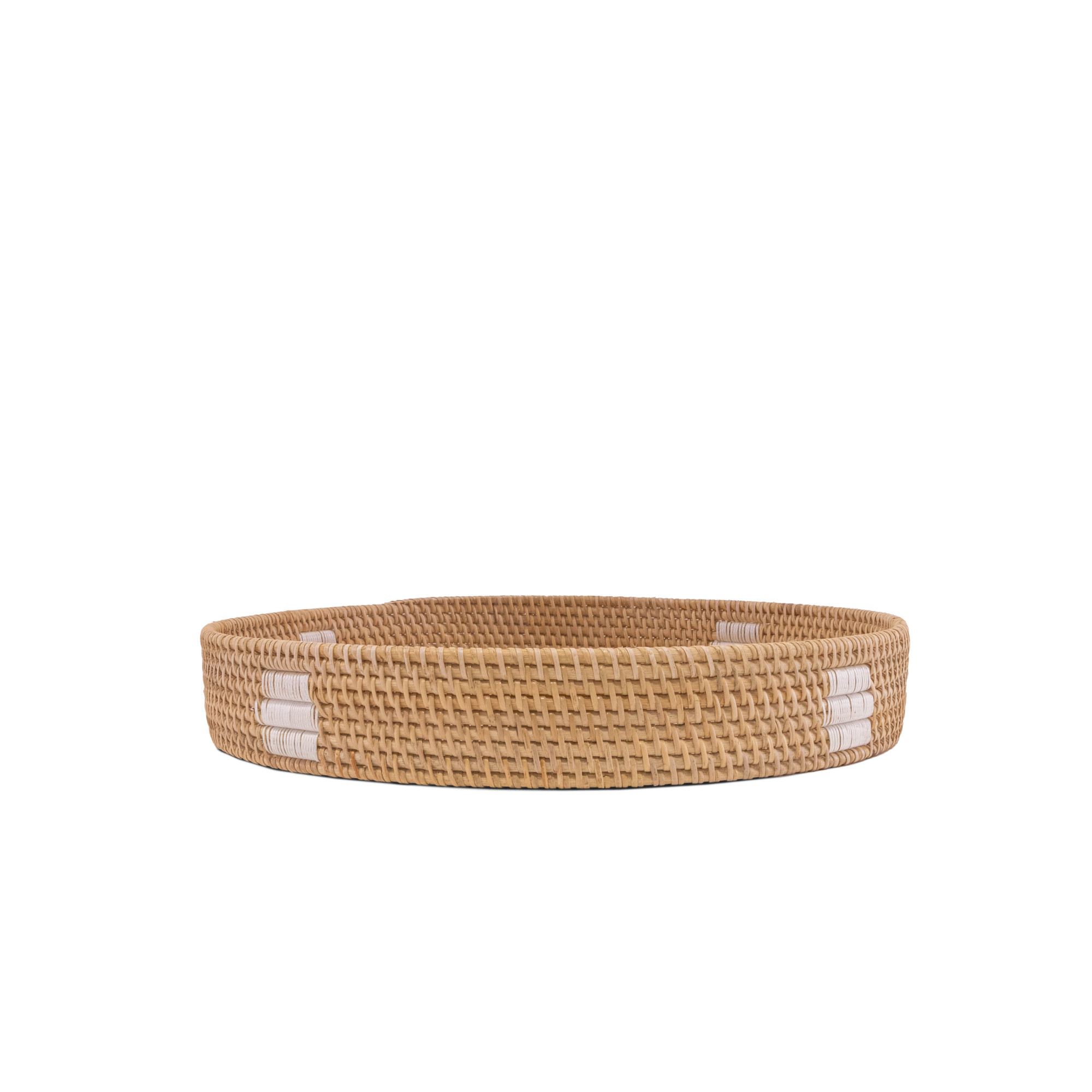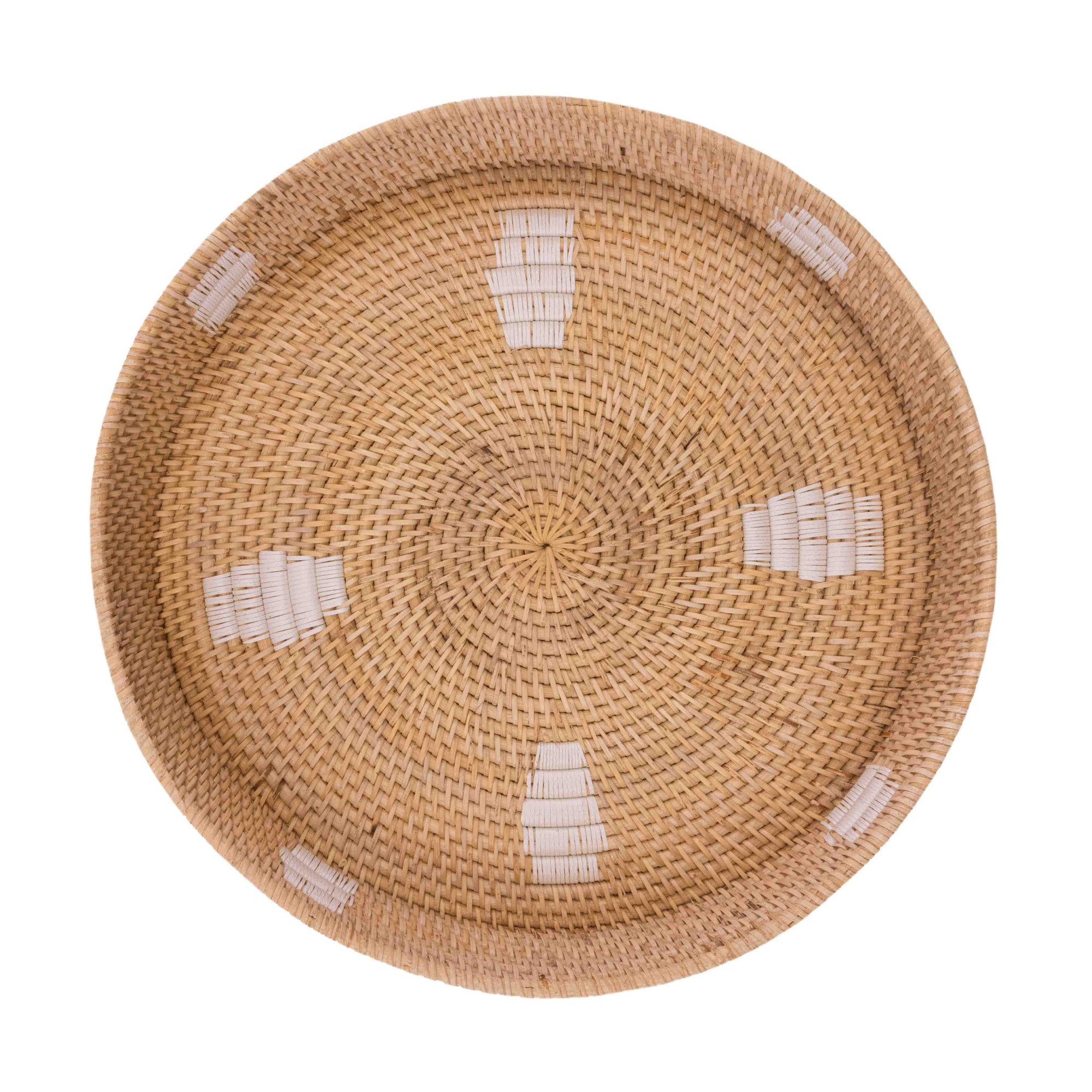 Handwoven with care using natural rattan and cane, our Toba Handwoven Tray brings the ease of Indonesian craftsmanship into everyday living. The weave is tight and detailed, accented with subtle white diamond motifs in synthetic rattan that lend a fresh, contemporary touch. Designed with a shallow, open form and raised edges, the tray is easy to carry and beautifully functional, perfect for serving, curating a coffee-table vignette, organising consoles, or styling bedside essentials. Its natural texture instantly softens modern spaces, while the clean patterning keeps the look refined and versatile.