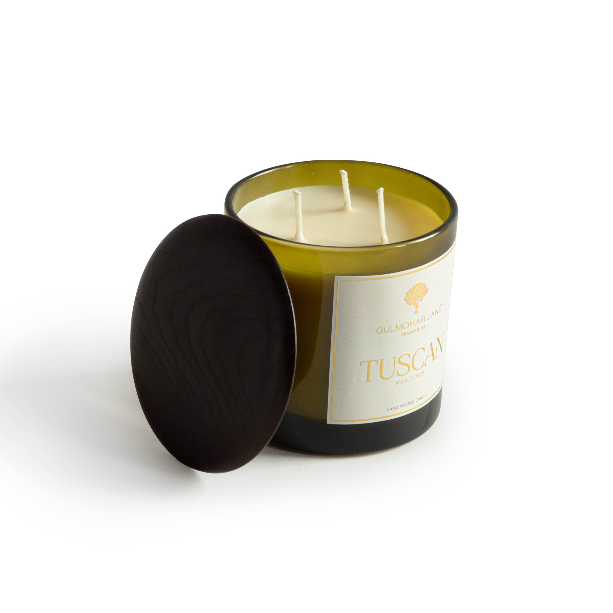 The rich olive green glass of this jar, reminiscent of the ancient groves on sun-drenched hillsides, holds the hand-poured wax and is finished with a grounded solid wooden lid. The fragrance evokes the moment the Tuscan hills awaken under a gentle sun, where orchards burst with the zest of ripe citrus and meadows sway with the delicate perfume of peonies. Bright, tangy notes dance like laughter in the open air, softened by the velvety sweetness of blossoms unfurling in full bloom. Together, citrus and peonies paint a fragrance that is both lively and tender, the sparkle of fresh fruit carried on the breeze, mingling with the softness of petals kissed by summer. Tuscan Meadows is a living canvas of fields, light, and pure joy, perfect for uplifting the atmosphere of a kitchen or sunlit living room.