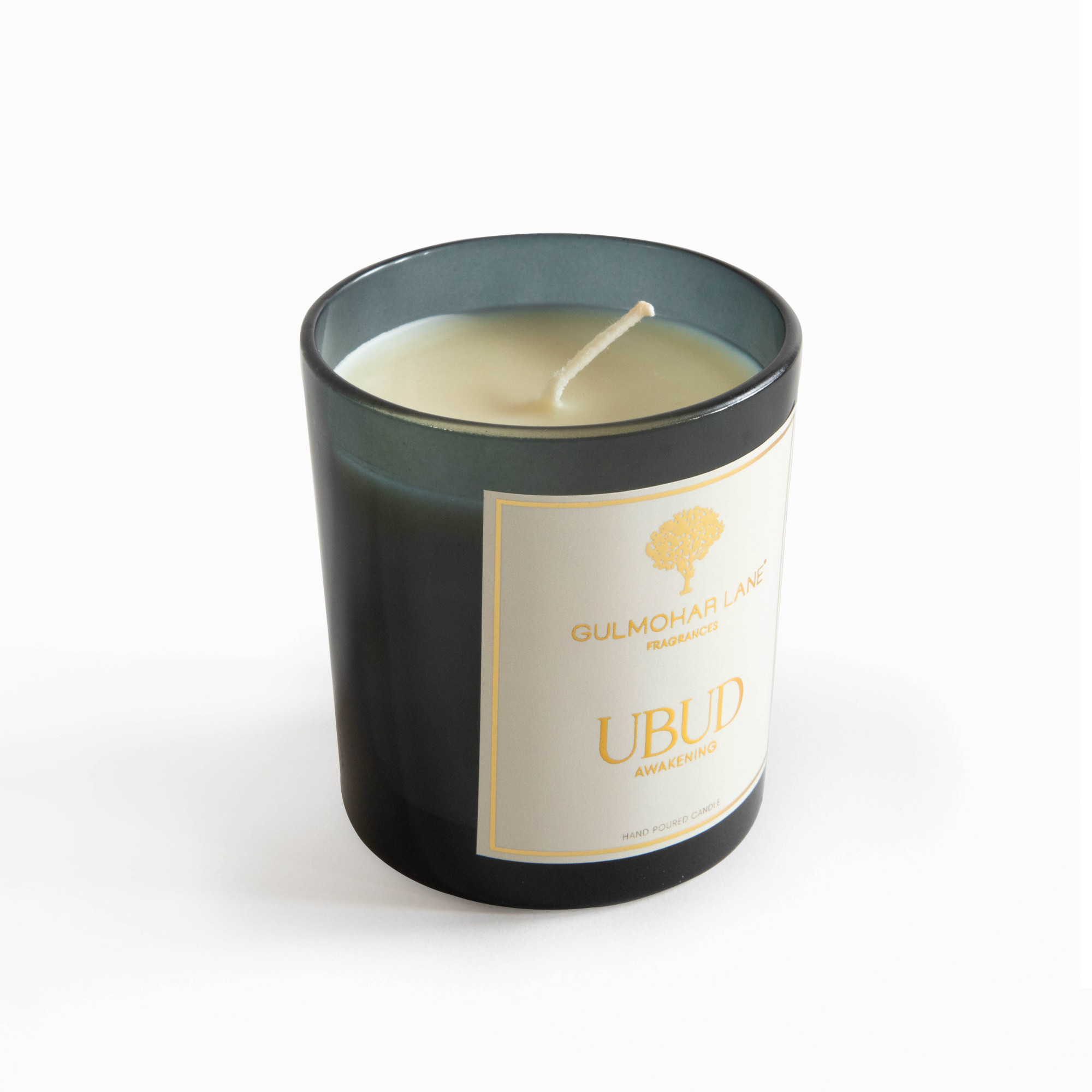 Housed in deep black glass, Ubud Awakening is your silent invitation to breathe, reflect, and be renewed. The fragrance itself unfolds like a quiet reverie at dawn, a fragrant meditation rooted in place and soul, as dew-kissed terraces awaken under hushed chants. It opens with the cool clarity of wet stone and water, evoking streams that thread through emerald valleys, while the gentle sweetness of ylang-ylang rises like a sacred breath. Bamboo’s verdant essence anchors you to Bali’s living spirit, offering quiet renewal. Ubud Awakening is your silent invitation to breathe, reflect, and find serenity in a master bathroom or study.