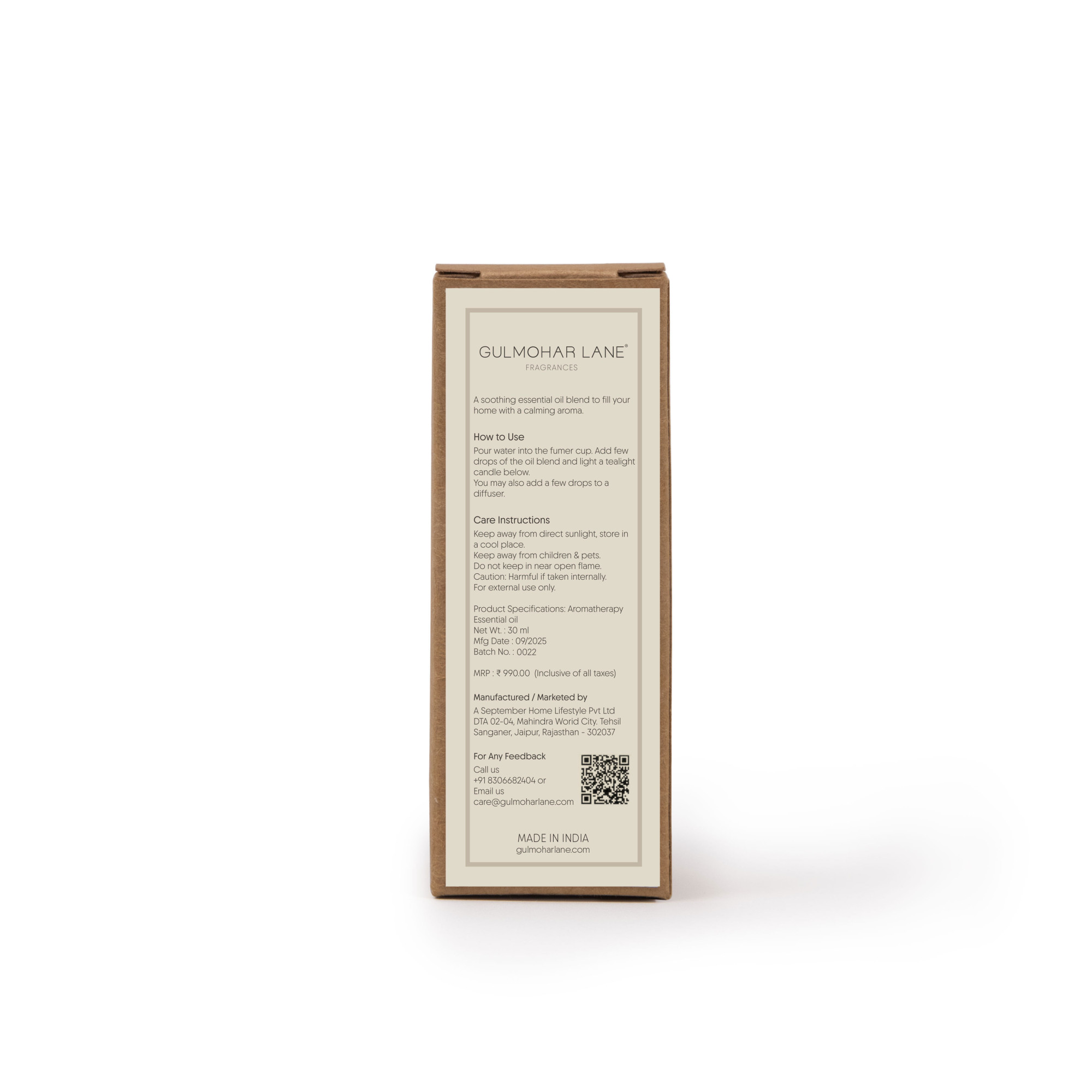 Packed By: A September Home Lifestyle Pvt Ltd, DTA 02-04, Mahindra World City, Sanganer, Jaipur -302037, Customer Care no: +91 8306682404 (9.30 am to 6:00 pm IST, Monday-Sunday) Email: [email protected]
