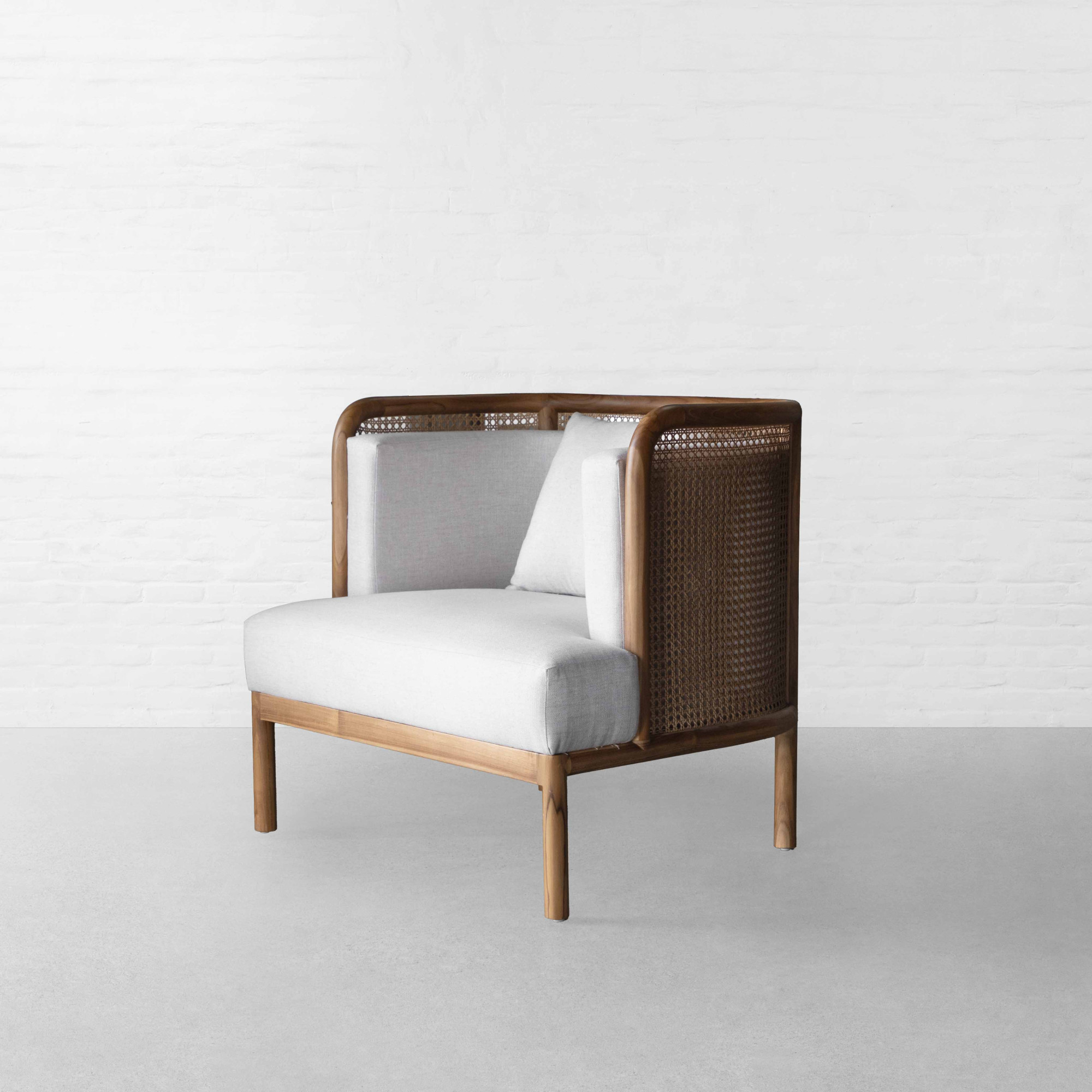 The Ubud Rattan Armchair is a perfect balance of traditional craftsmanship and contemporary design. With its softly curved edges and a handwoven rattan backrest, this armchair adds a touch of artisanal charm to any space. The sturdy wooden frame ensures durability, while the generously cushioned seat offers comfort for lounging or conversation. Ideal for both modern and classic interiors, the Ubud Rattan Armchair brings a natural, elegant presence to your living room, creating a stylish retreat for relaxation.