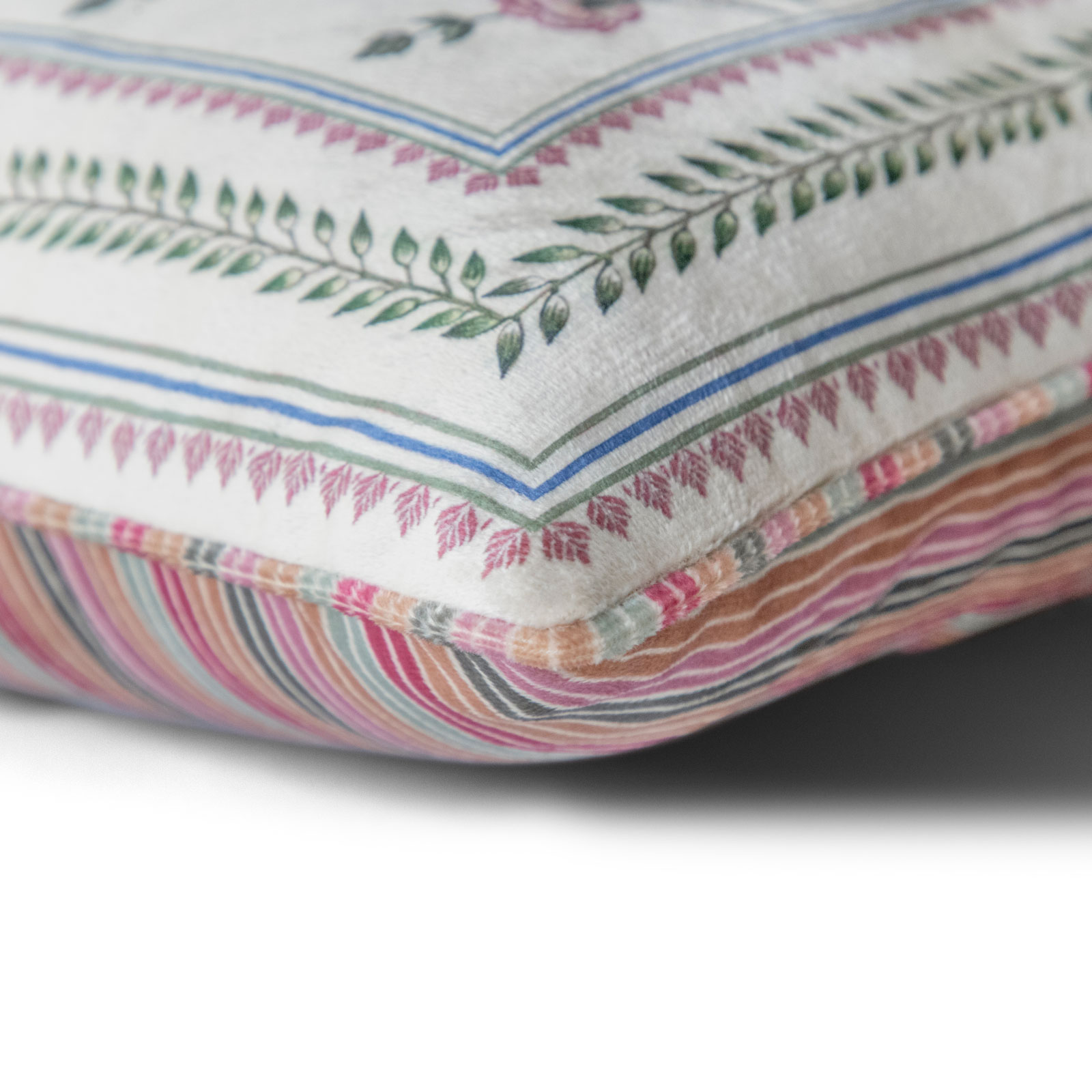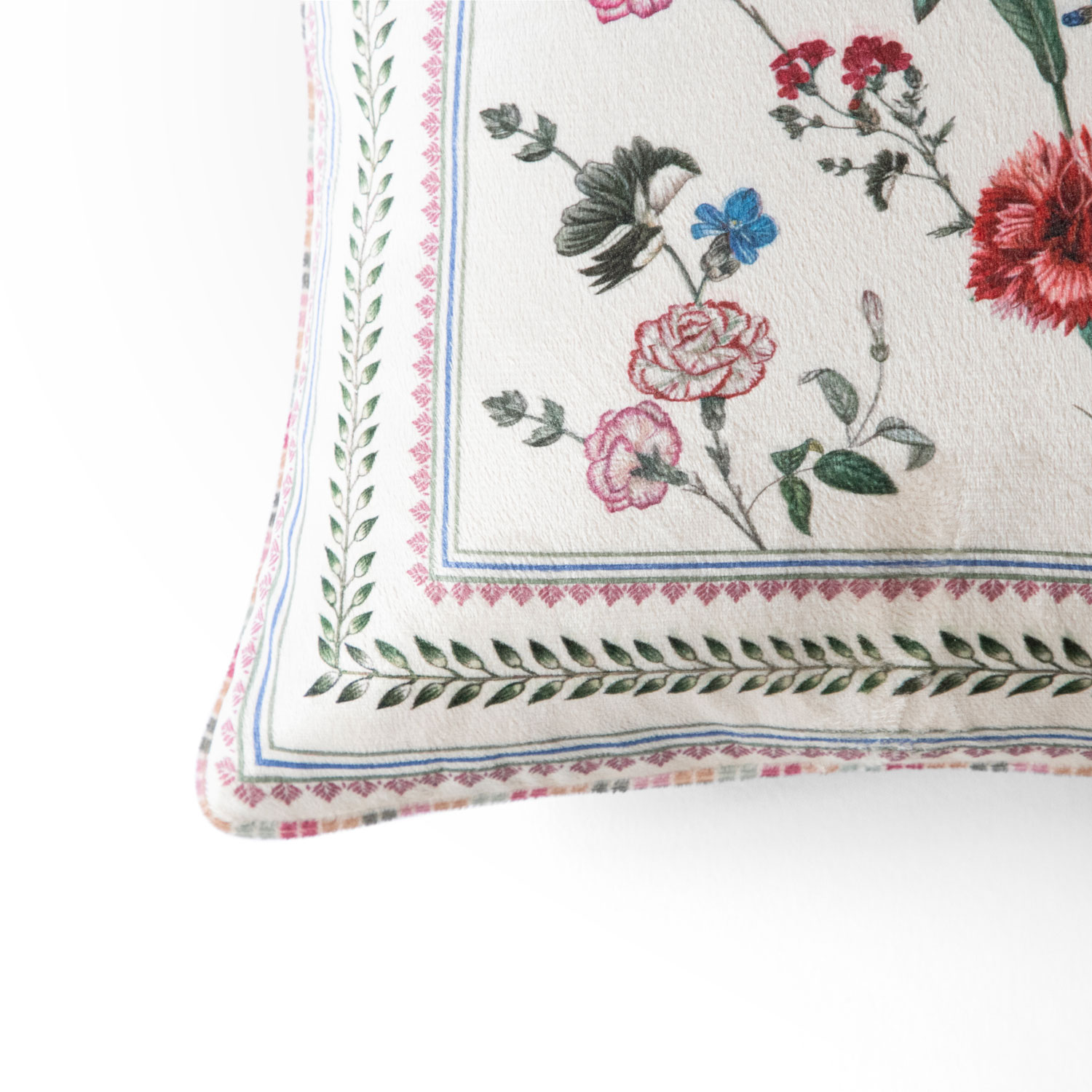 The delicate floral design of our “Valley Flowers Cushion Cover” creates a soothing visual display that adds character and cheer to your home. Whereas, Its playful pattern and warm pink tones will remind you of the fresh foliage around your beloved family farm.