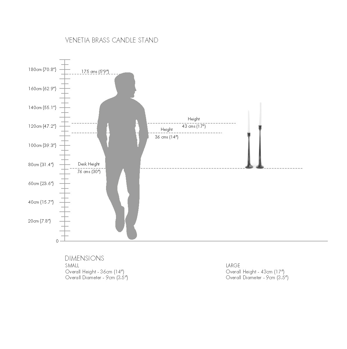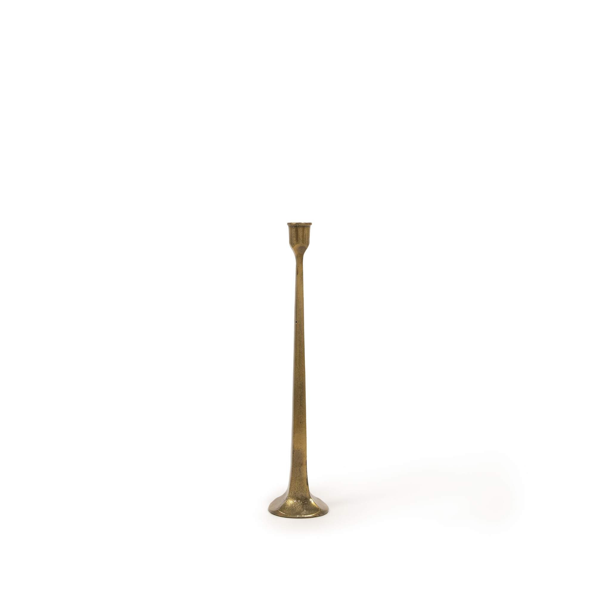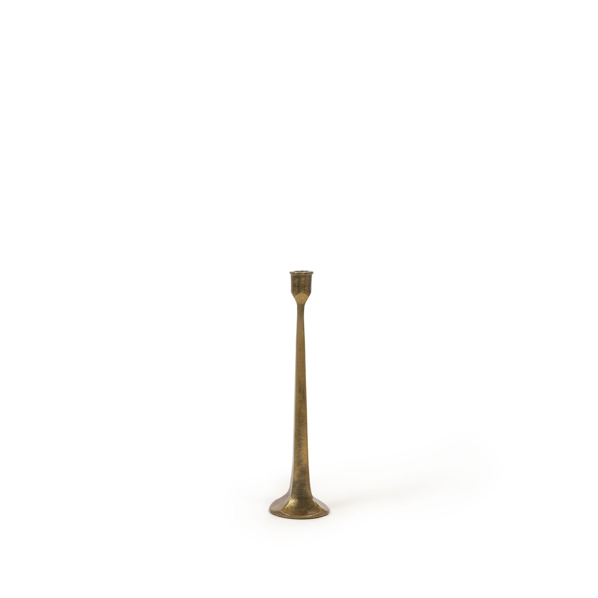 Cast in aluminium with a rich brass finish, our Venetia Brass Candlestand exudes understated vintage charm. Its tall, slender silhouette and gently aged surface evoke the quiet allure of antique finds, pieces that feel storied yet effortless. There’s a sense of timeworn beauty in its uneven patina and artisanal texture, giving each piece its own distinct character. The design embraces simplicity, allowing the warm gleam of brass to take centre stage, making it a timeless accent for both modern and traditional settings. Style it in pairs for a dramatic tablescape, or let it stand alone on a console or mantel for a hint of sculptural grace. Whether placed beside a vase of fresh blooms, layered with books, or used as part of an intimate dining setup, this candle stick adds a sense of calm sophistication.