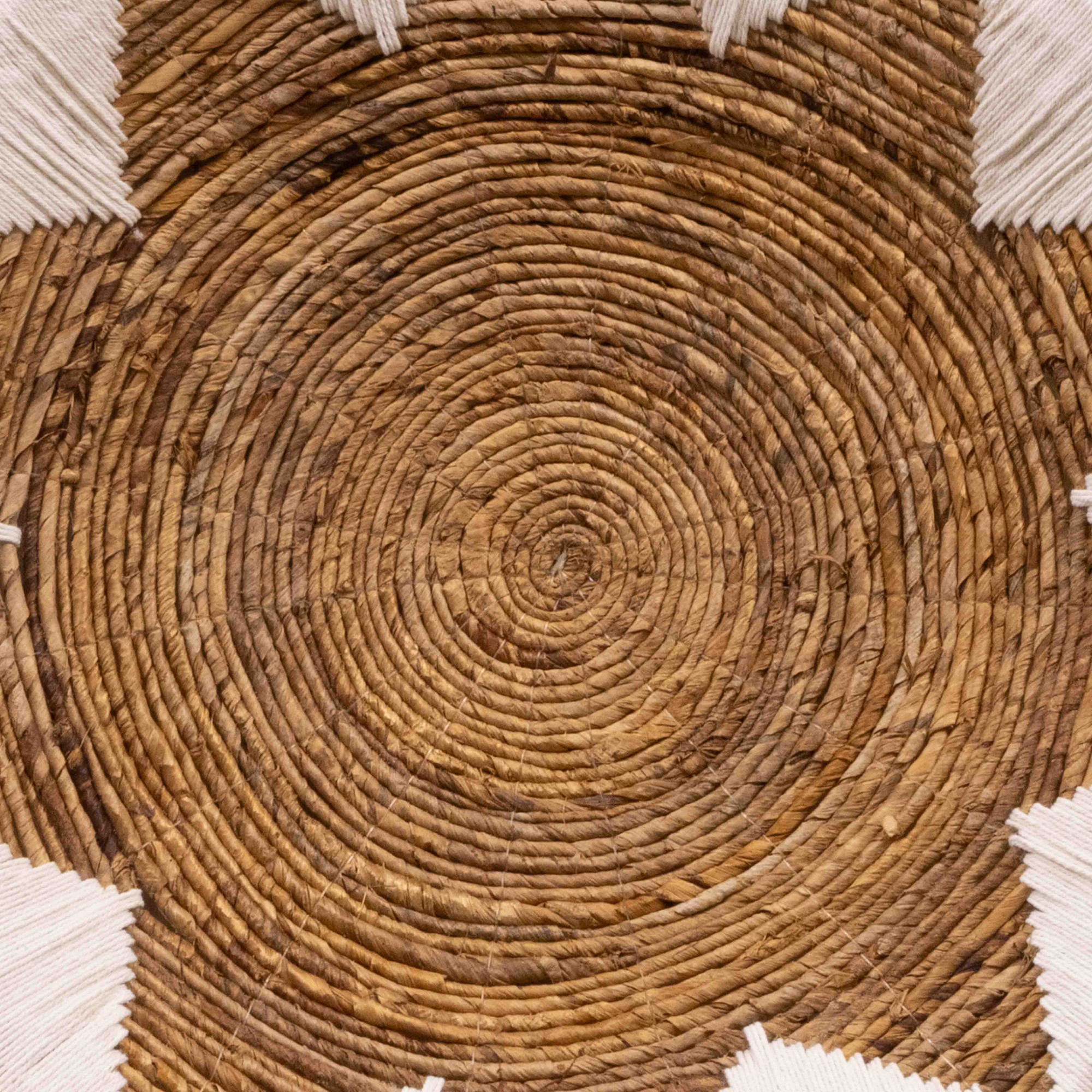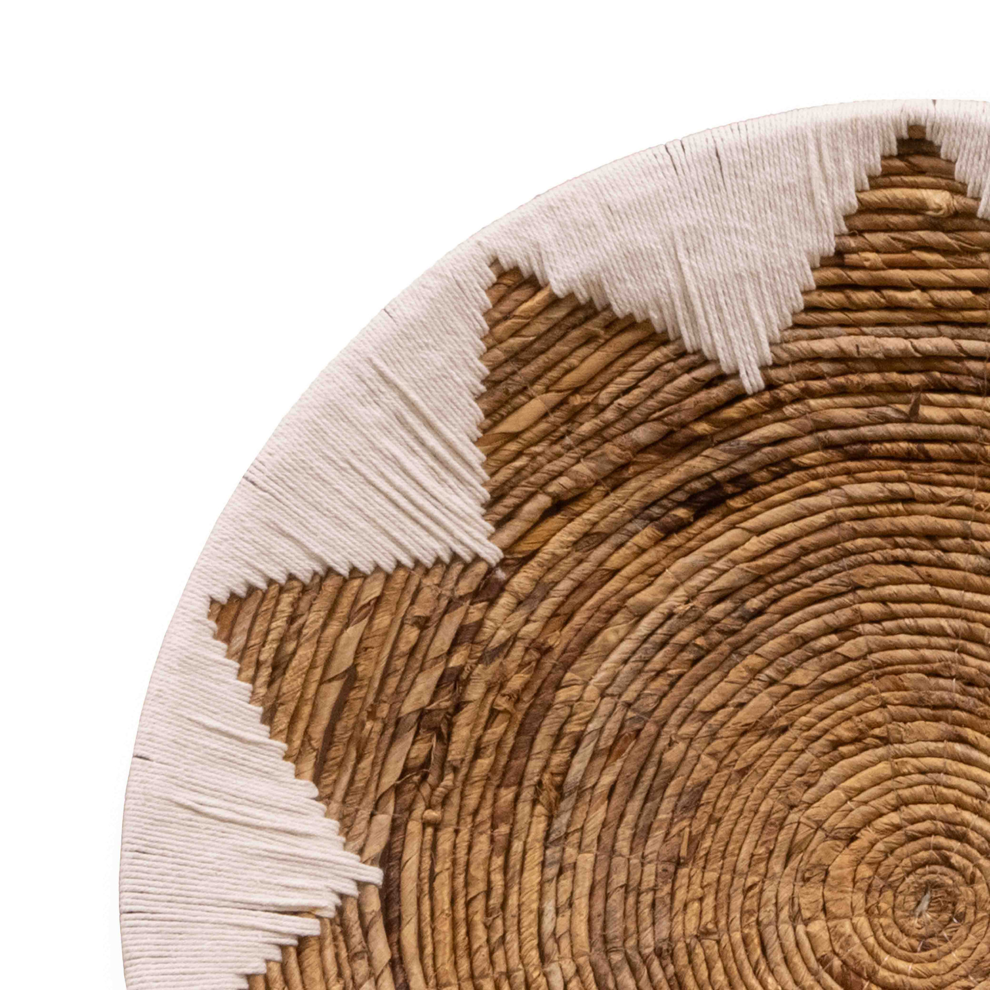 A striking fusion of natural texture and bold contrast, our White & Natural Seagrass Wall Art Decor celebrates the artistry of traditional weaving with a contemporary edge. Crafted from hand-coiled seagrass and accented with white yarn, its radiant sunburst motif adds depth, warmth, and a touch of rustic drama to any wall. The interplay of earthy tones with striking white highlights captures both organic simplicity and graphic sophistication, making it a statement piece that bridges traditional craftsmanship and modern design. Whether styled as a solo focal point or grouped with other woven accents, it brings a sense of texture, tactility, and handcrafted charm to your interiors.
