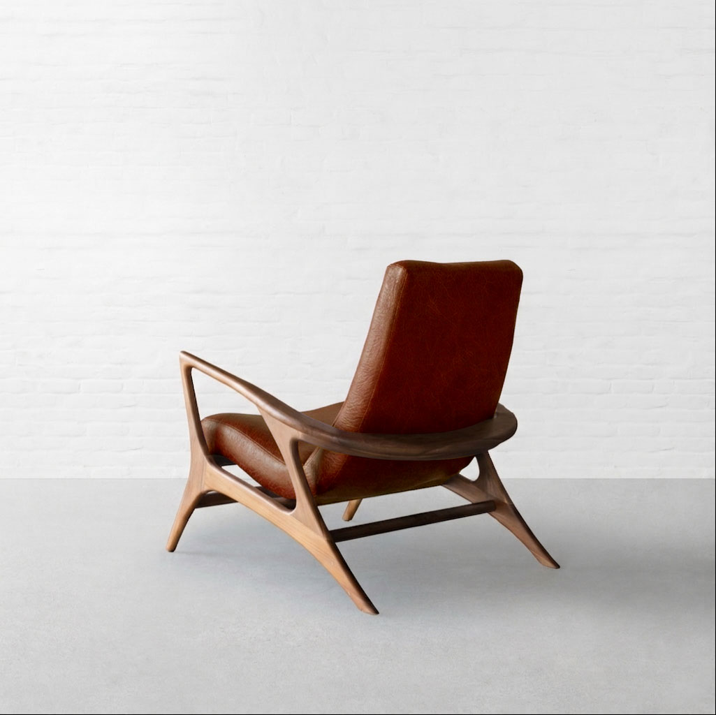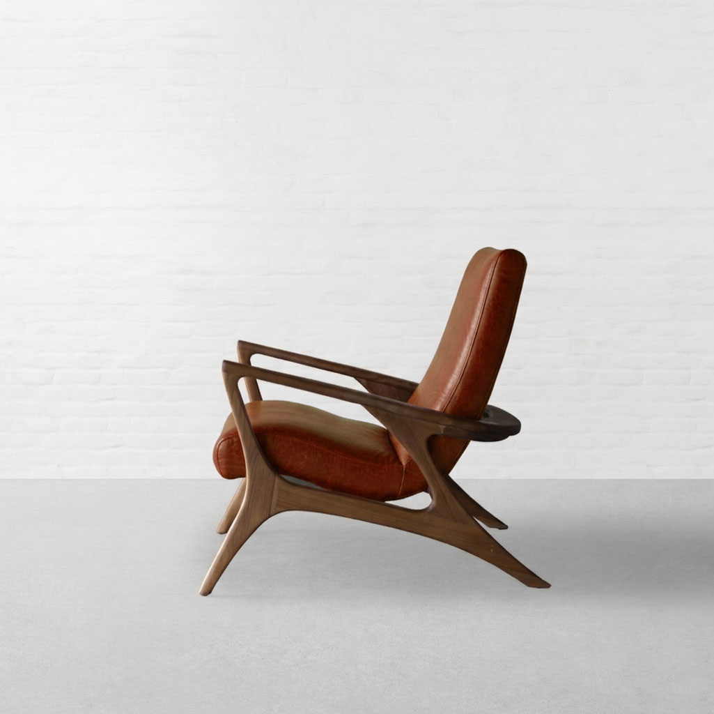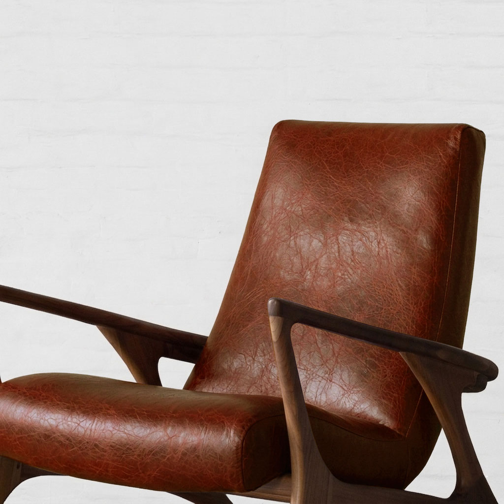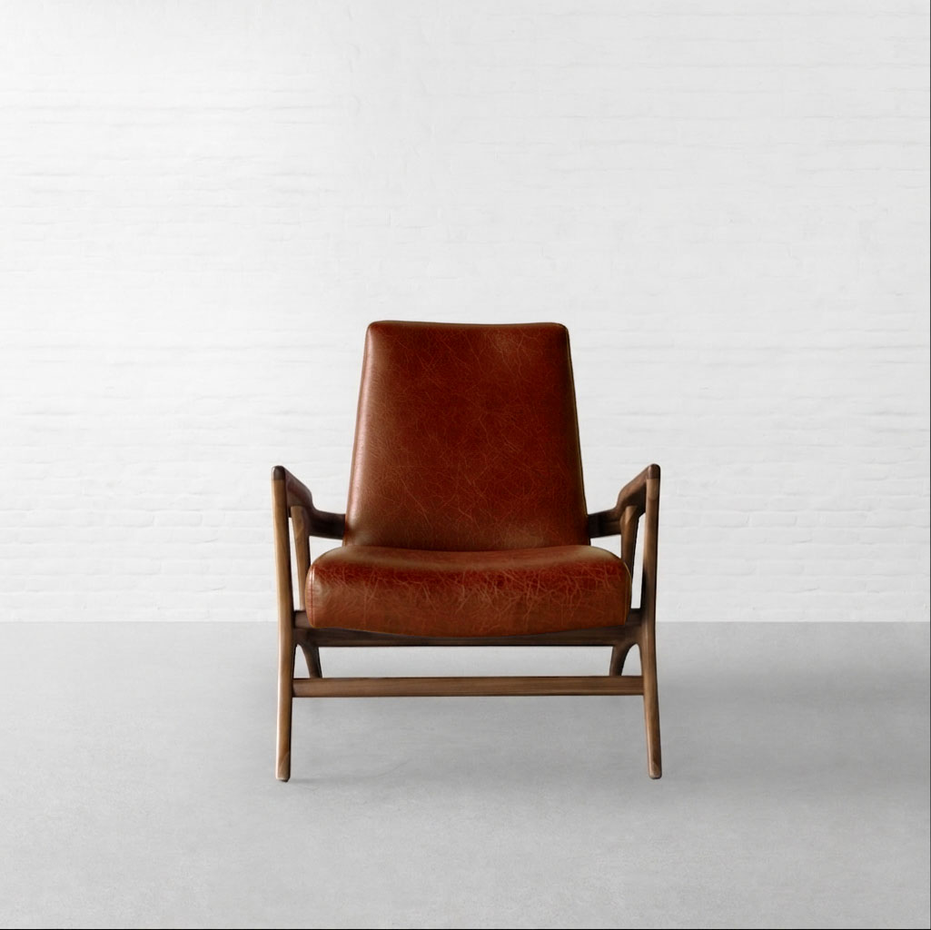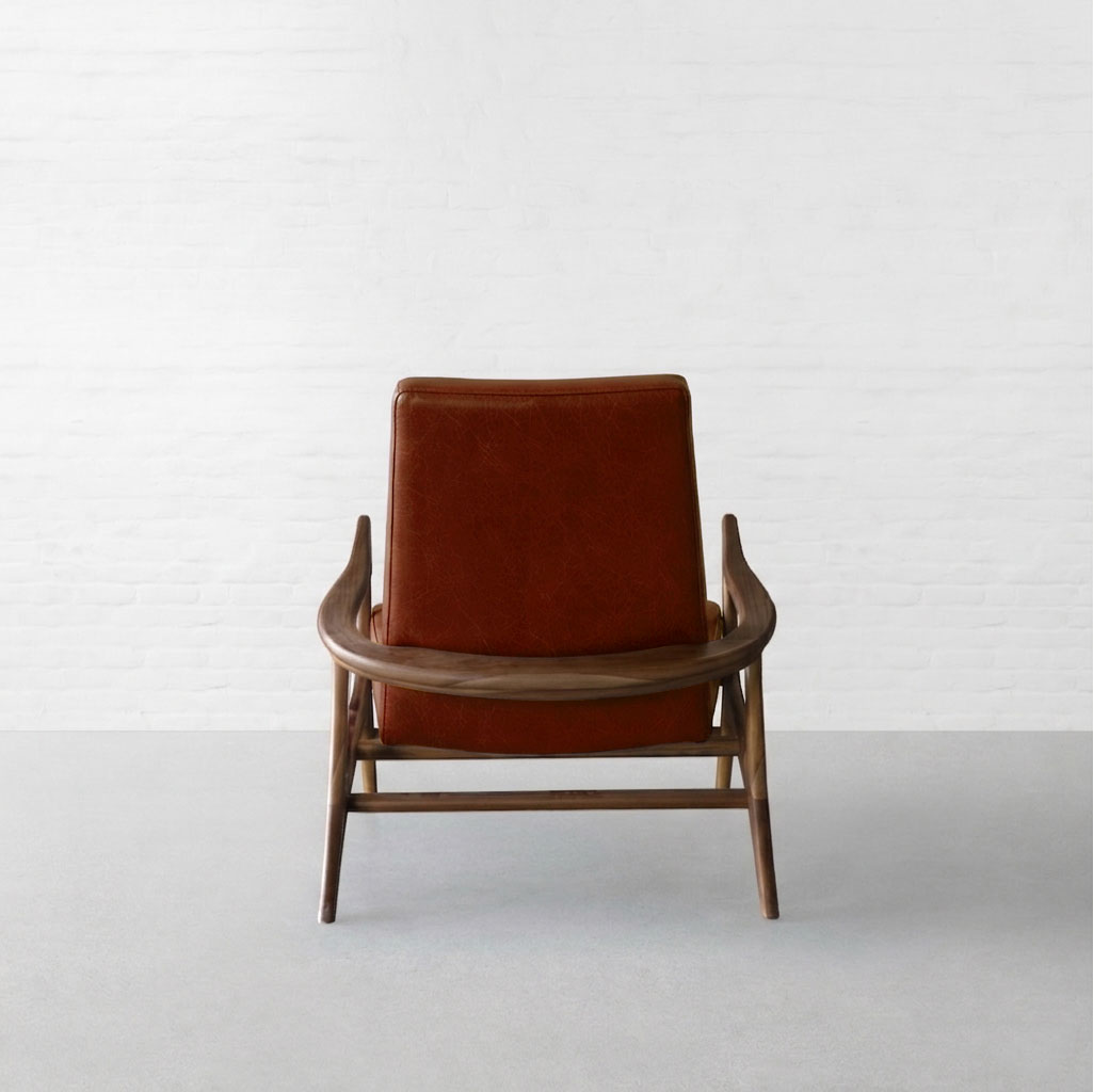 Wrapped in strong lines and fluid form, the Bergen Lounge Chair draws attention with its asymmetric silhouette and sculptural side profile. Viewed from the side, its reclined stance reveals a thoughtful interplay of raw wood textures, clean seating, and soft curves, coming together in a form that feels both grounded and expressive. Upholstered in premium leather, the seat gains a deeper, more tactile character. The natural grain adds richness and variation, complementing the warmth of the wood while maintaining the chair’s clean, minimal language. Smooth yet durable, the leather enhances comfort while developing a subtle patina over time. Rooted in a Japandi aesthetic, the design remains restrained yet inviting, perfect for unwinding with a book or standing out as a quiet statement in a living space.