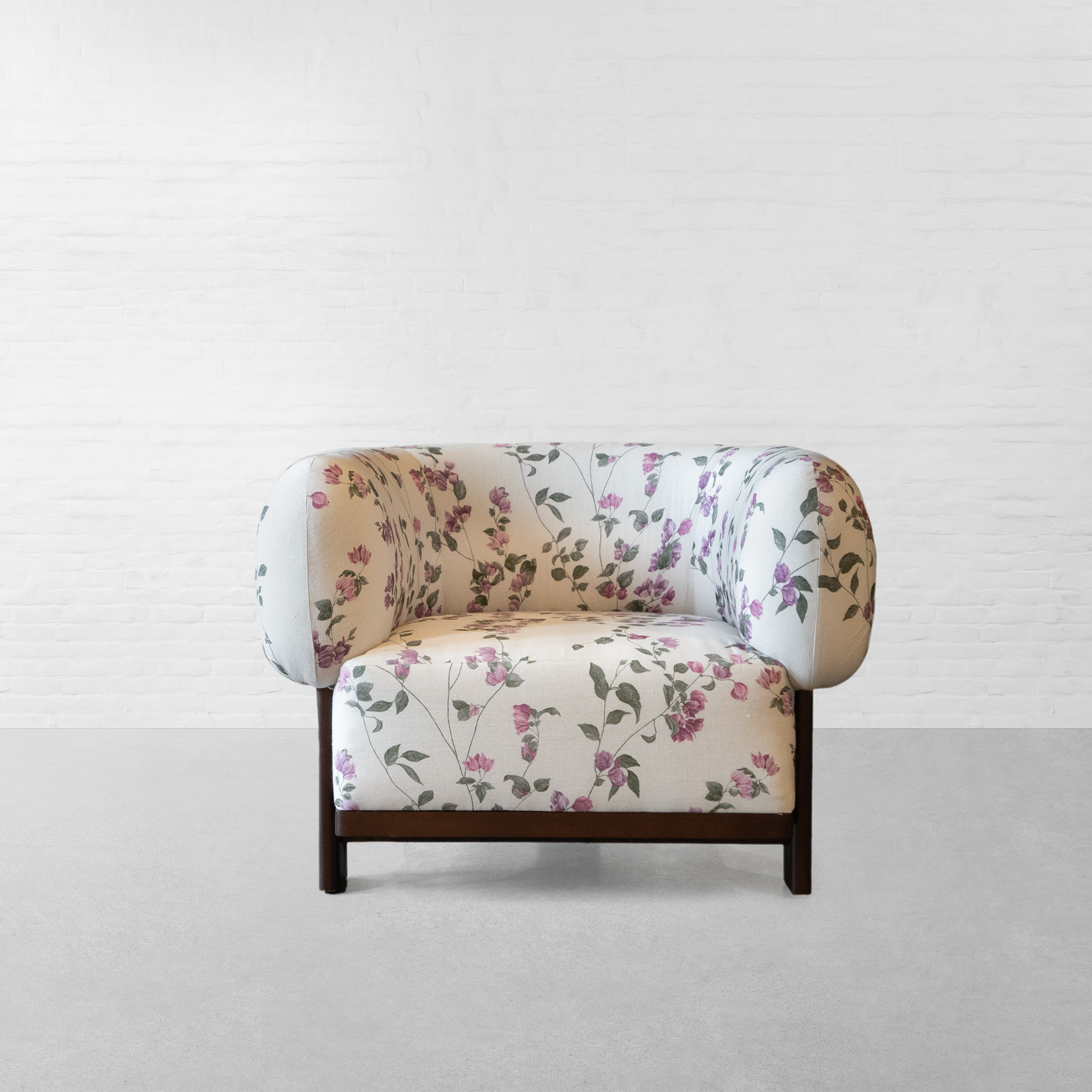 Our Summer Bougainvilleas draws from the natural way bougainvillea moves through a space, climbing freely, bending with light and air, never feeling arranged. The pattern flows gently across the fabric, with magenta blooms softened by green foliage, allowing the design to feel expressive without becoming busy. Printed on 100% natural linen, the texture plays an essential role. The slight irregularity of the weave breaks up the colour, giving the print a relaxed, almost sun-washed quality. This print works beautifully on sofas and armchairs, where the pattern brings warmth and character. It suits rooms filled with natural light, pale woods, and soft neutrals, adding a sense of movement and quiet life to the space.